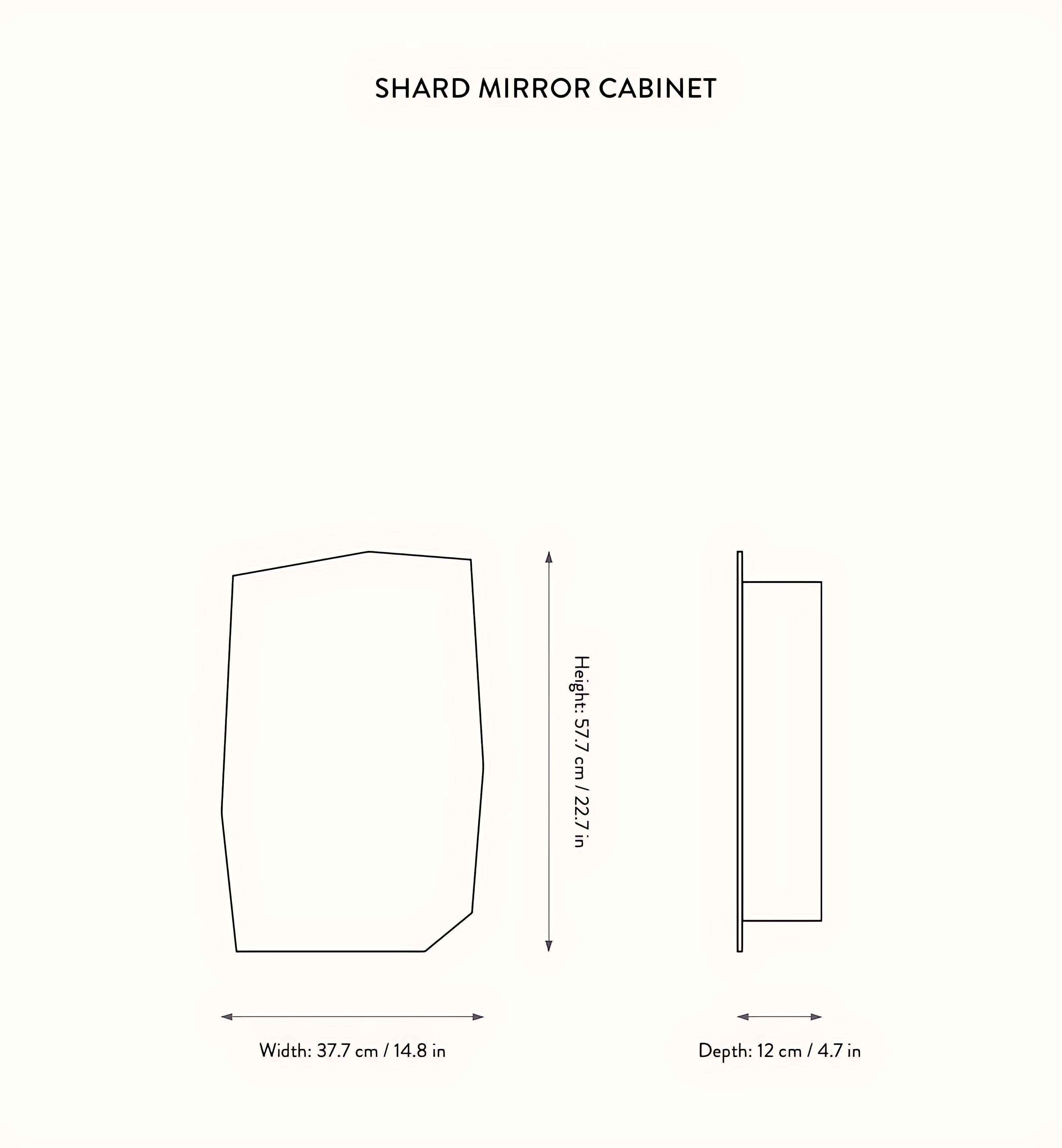 Der Shard Spiegelwandschrank ist ein einzigartiges Möbelstück, das Ihrem Interieur eine markante und funktionale Note verleiht. Sein Name leitet sich von den scharfen, rauen Kanten zerbrochener Keramik-, Glas- und Steinstücke ab. Der asymmetrische Spiegel aus Edelstahl mit einem elegant versteckten pulverbeschichteten Metallschrank dahinter ist eine wunderschöne Neuinterpretation des klassischen, funktionalen Spiegelschranks .