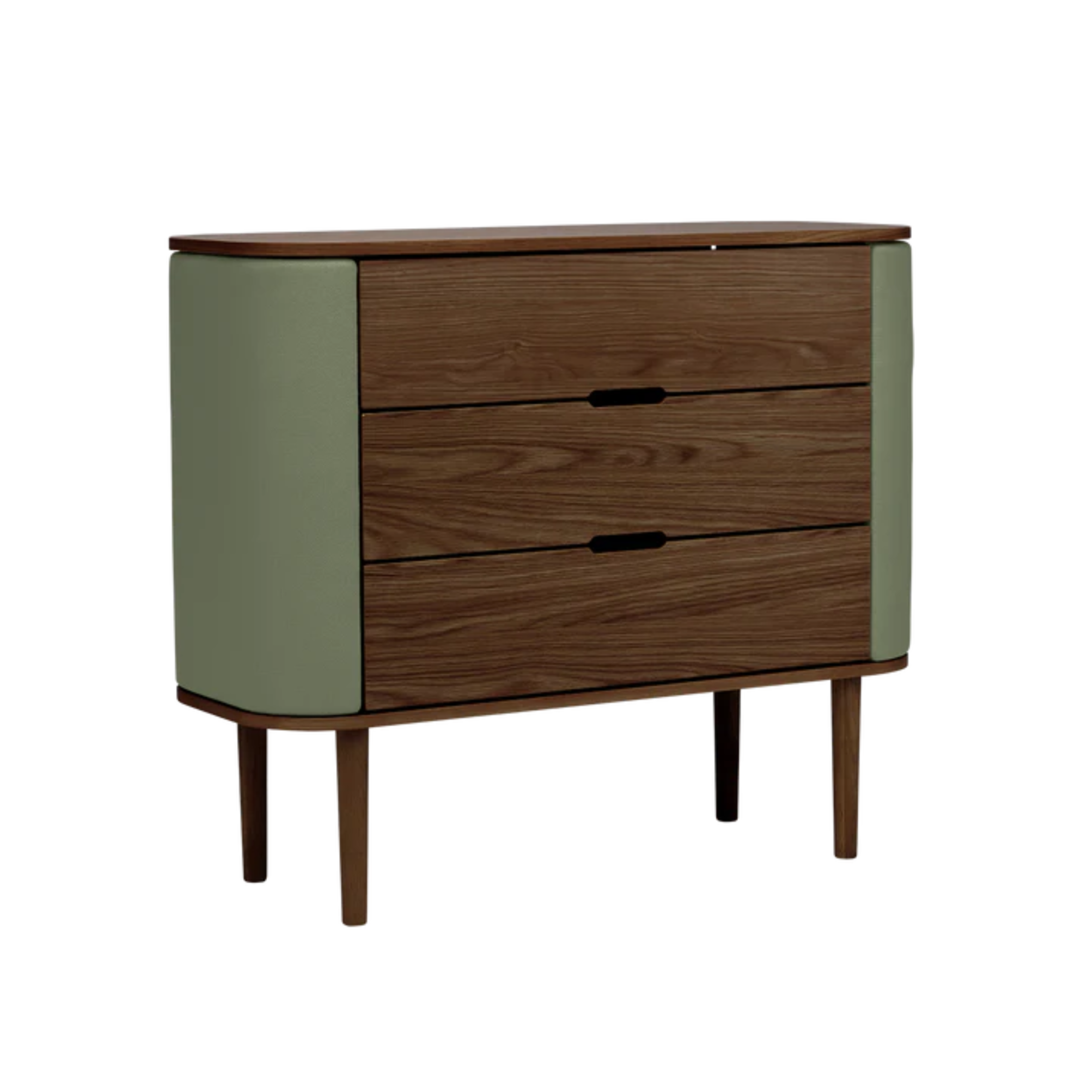 Schrank TREASURES grün mit dunklem Eichenfuß