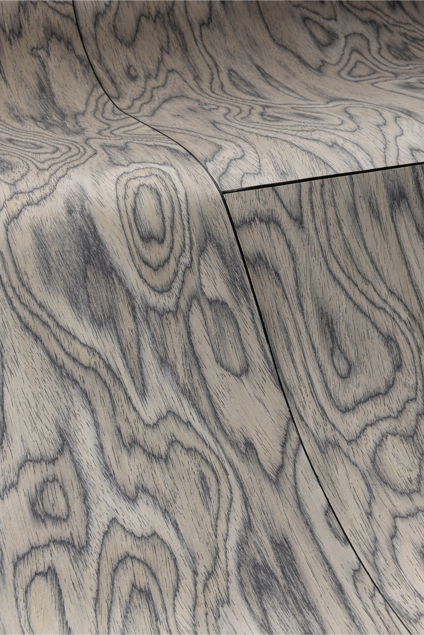 Tapete Coti besteht aus außergewöhnlichem Bois Coti-Furnier, das auch als geflammtes Holz bekannt ist. Die charakteristischen, unregelmäßigen Maserungsmuster verleihen ihr ein einzigartiges Aussehen, und das geometrische Blockmuster betont die Eleganz und edle Beschaffenheit des Materials. Es ist die ideale Lösung für mutige Innenräume, die voller ausdrucksstarker Akzente sind, die die Aufmerksamkeit auf sich ziehen.