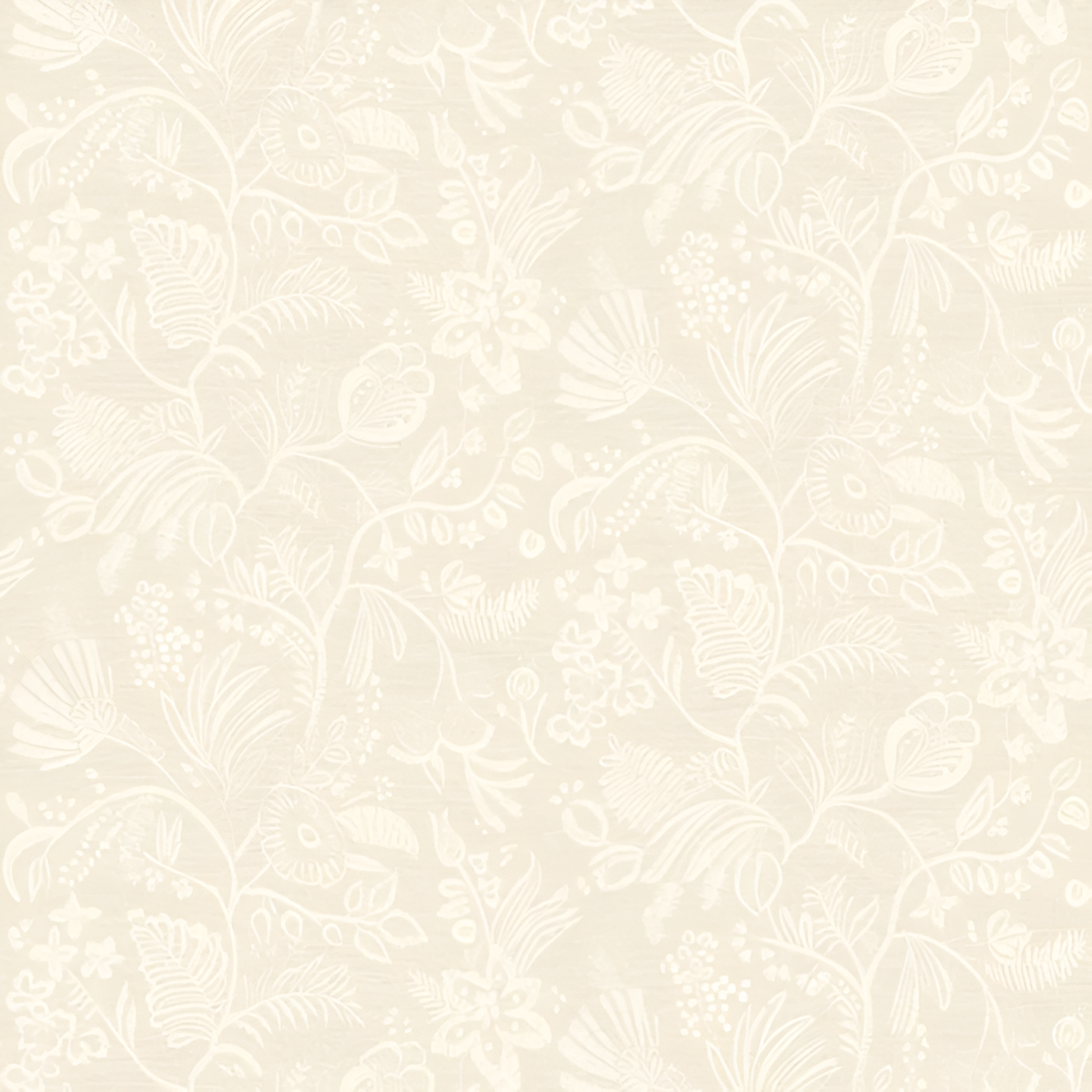 Strukturierte Tapete, die Stickerei mit floralem Motiv von Blumen und Blättern im Farbton PASTEL Elfenbein imitiert