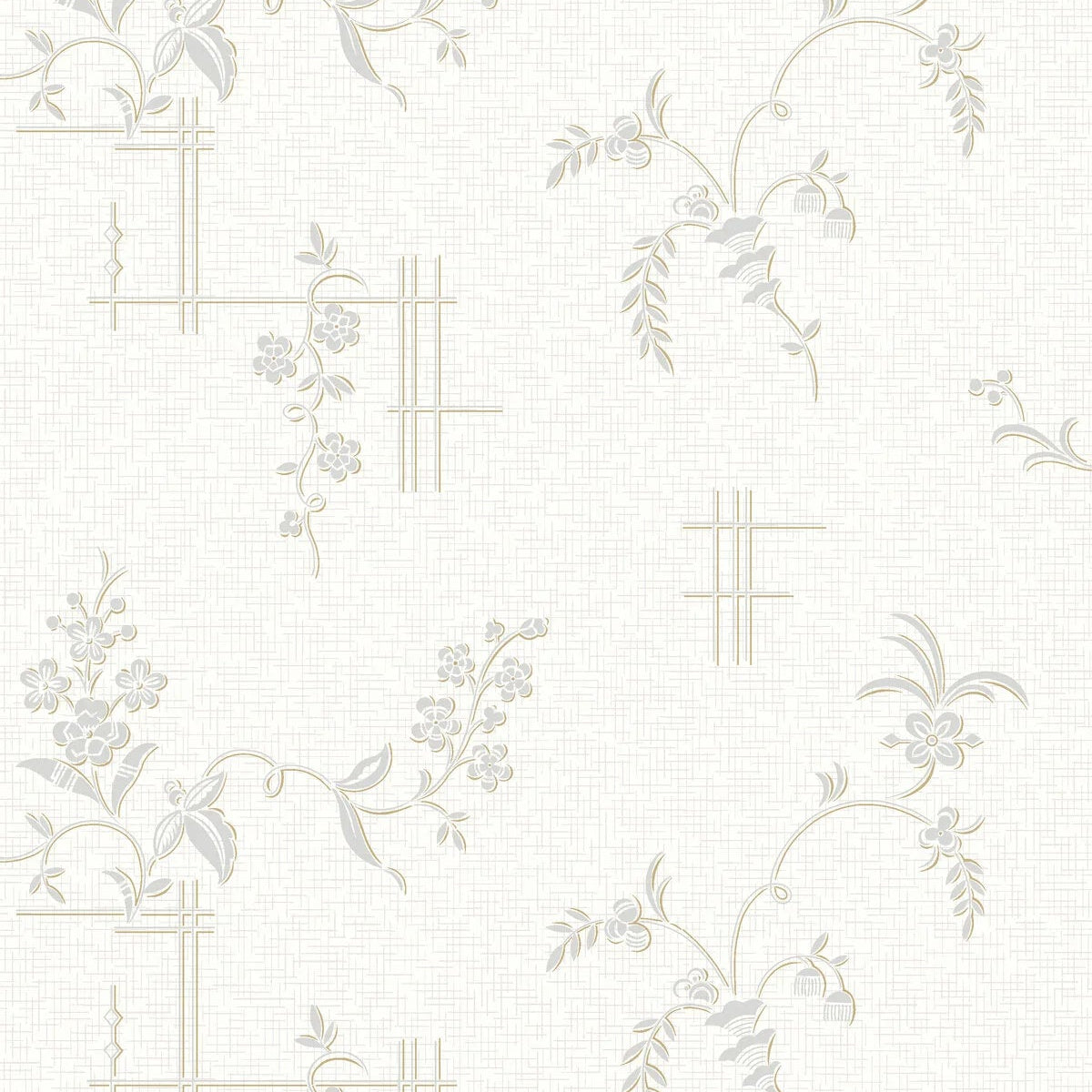 Tapete Ulricehamn begeistert durch ihre Schlichtheit, in der Weiß und metallisches Silber subtil durch goldene Akzente hervorgehoben werden, die sanft schimmern. Inspiriert von den stilisierten Innenräumen der 20er Jahre des 20. Jahrhunderts, vereint diese Tapete schöne florale Motive mit einem sich wiederholenden Karomuster und schafft so einen eleganten und raffinierten Hintergrund, der in jedem Raum perfekt zur Geltung kommt.