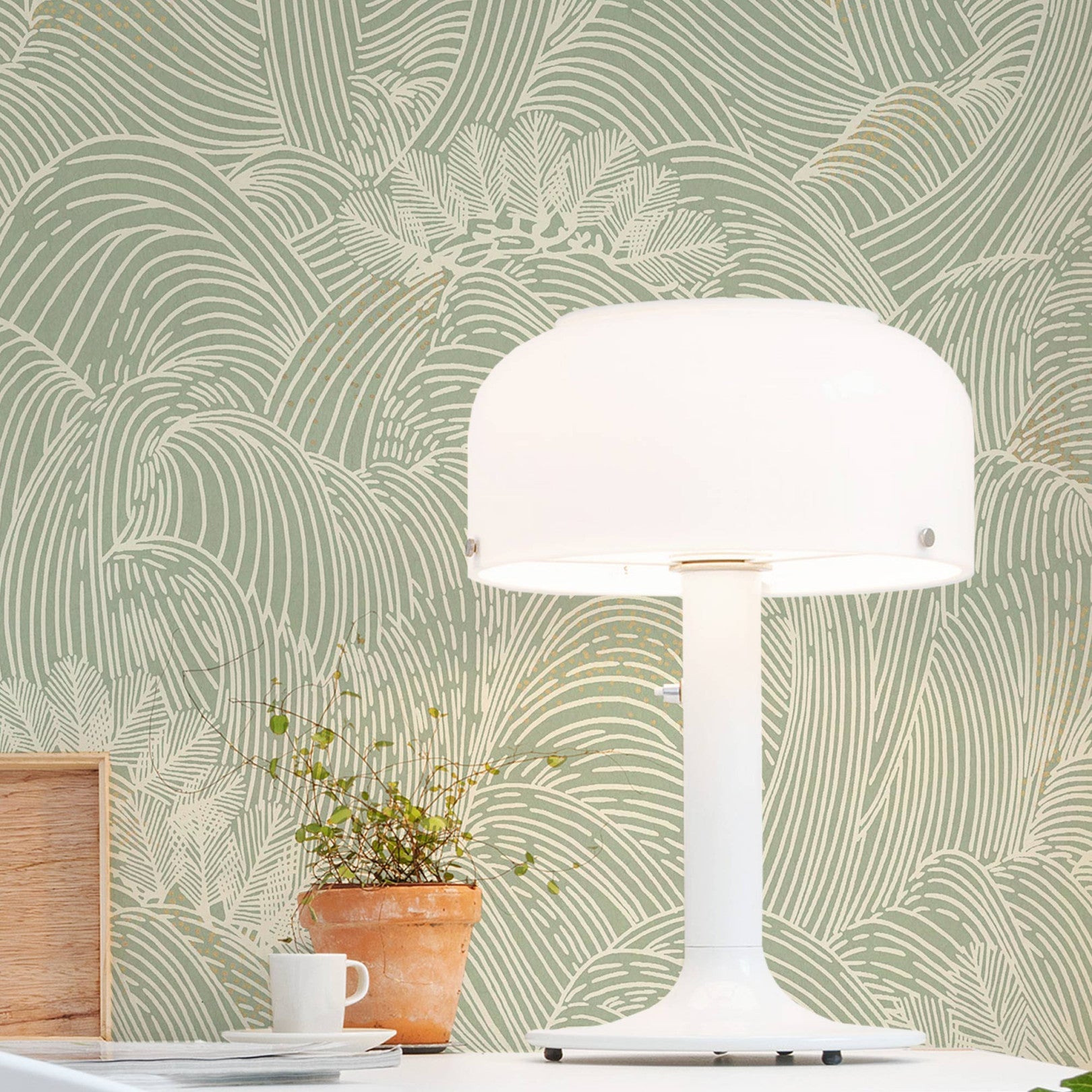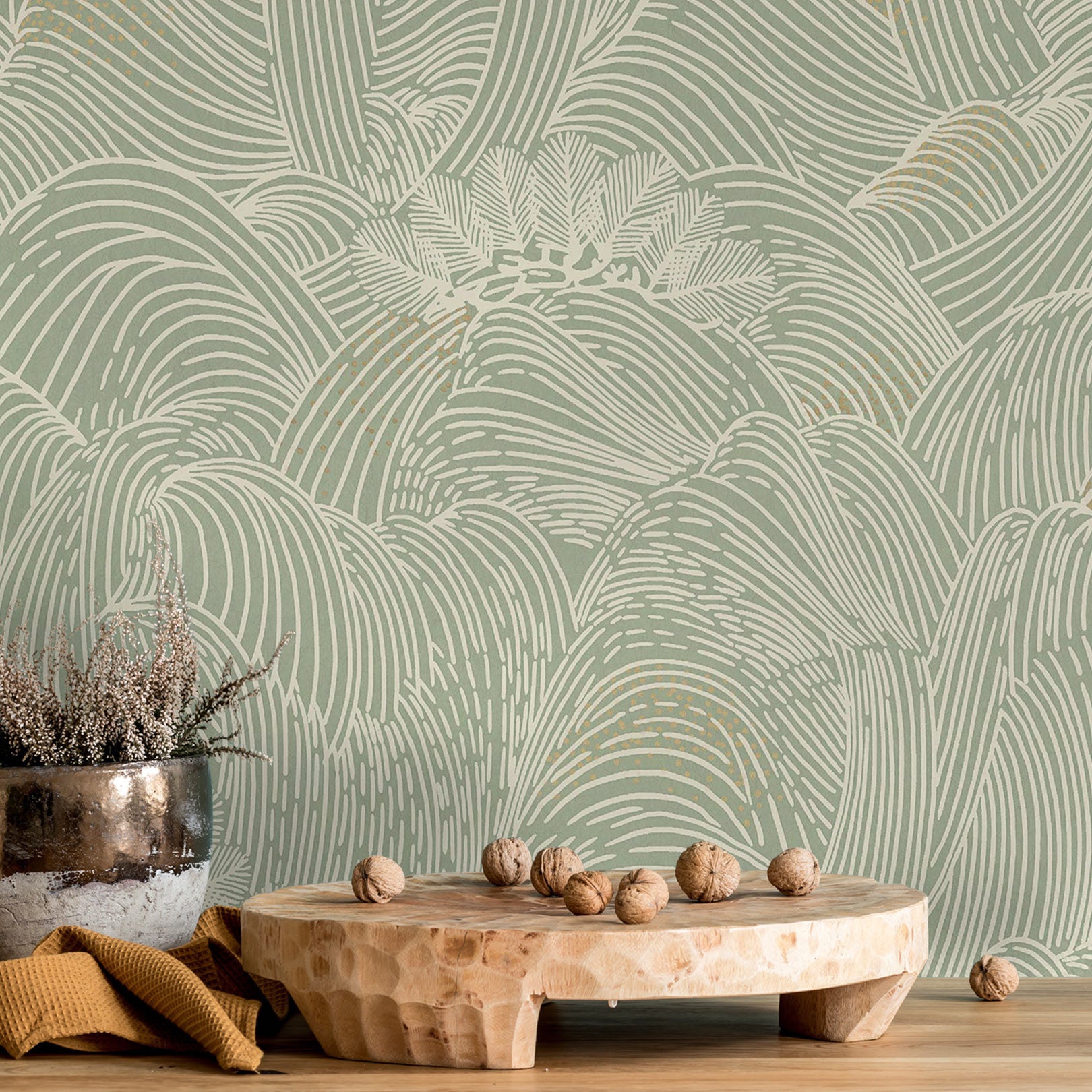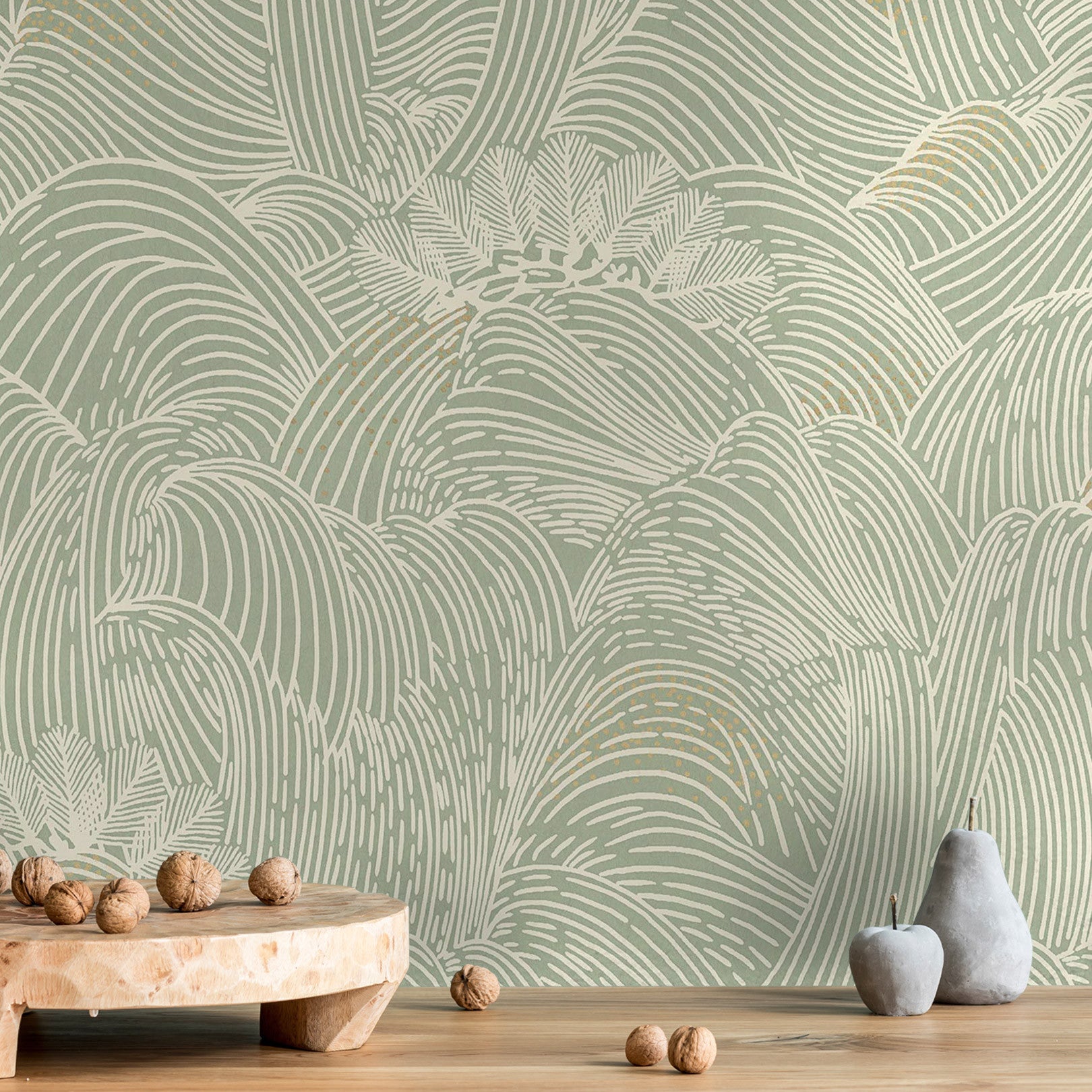 Strukturierte Tapete mit abstraktem Wellenmuster MARÉE HAUTE - VERT grün