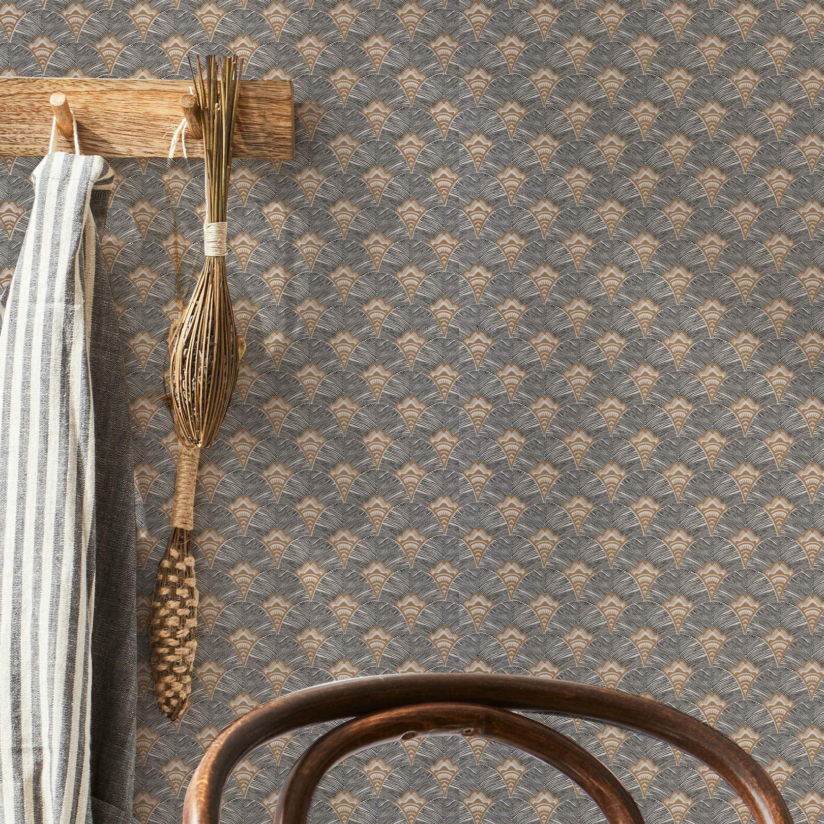 Struktur-Tapete mit abstraktem Fächer-Muster ADENIUM - MORDORE grau mit Gold