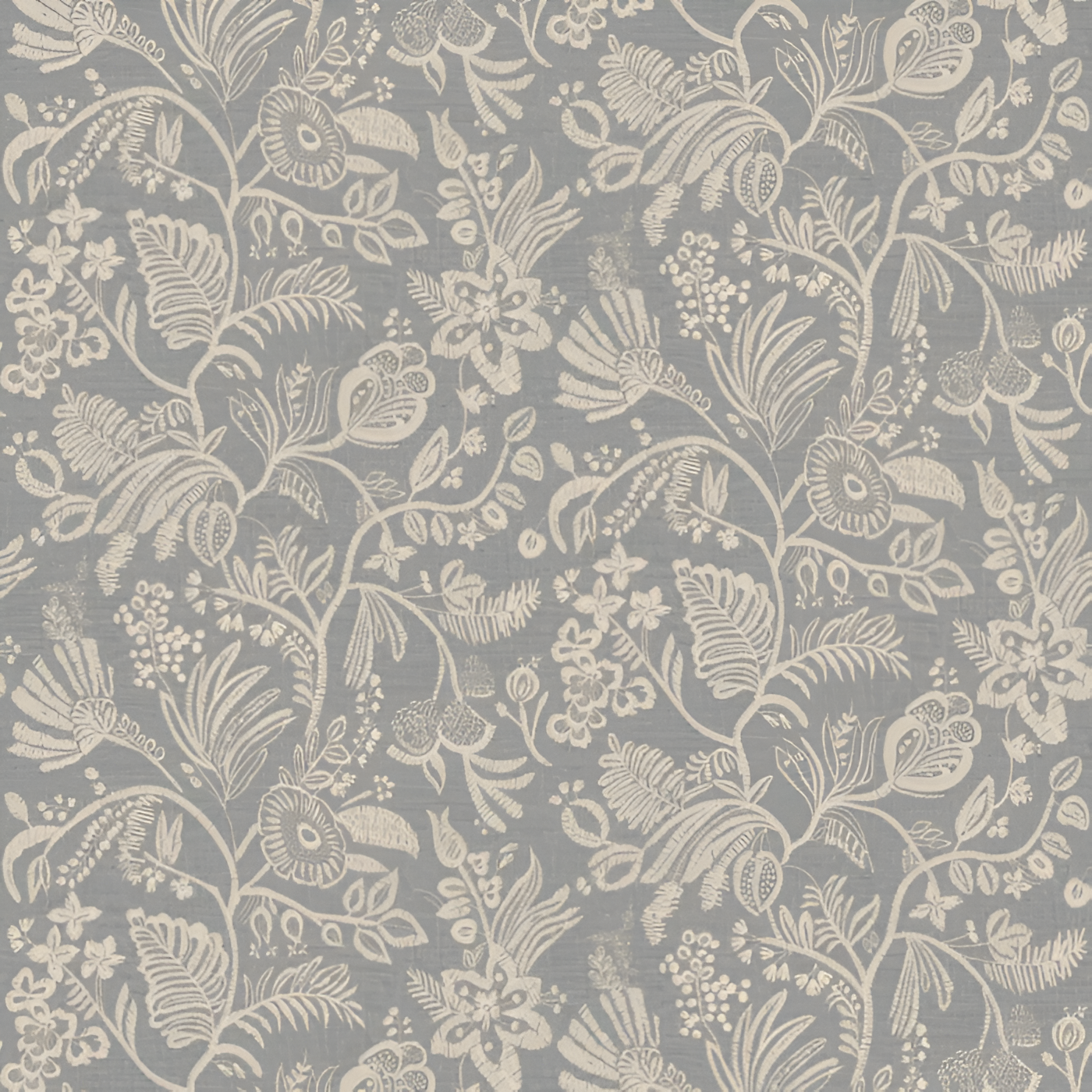 Strukturierte Tapete, die Stickerei mit floralem Motiv von Blumen und Blättern im Pastell - PIERRE BLEUE grau-blau imitiert