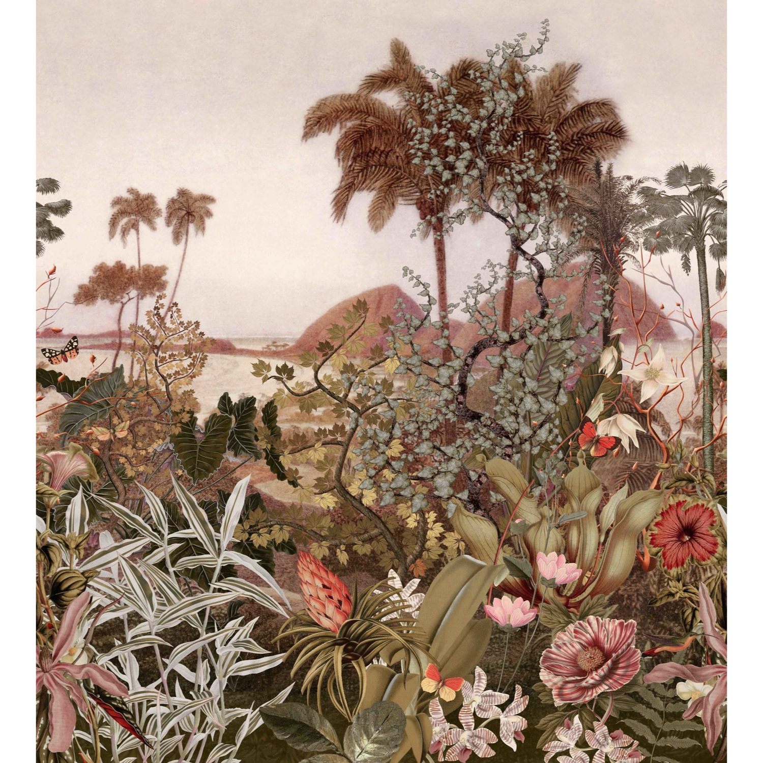 Wandbild mit tropischen Palmen KISAMA beige mit grün