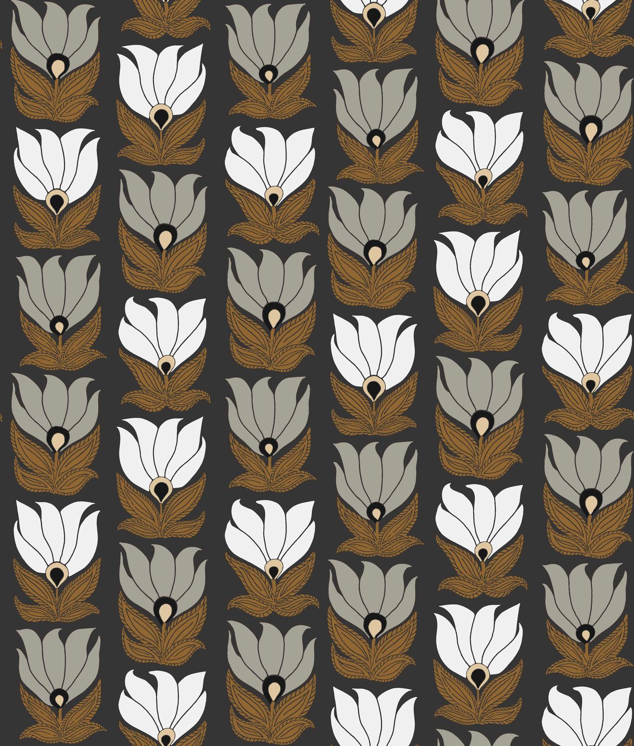 Tapete mit Pflanzenmotiv DAUPHINE - SCHWARZ/GOLD schwarz mit gold und grau