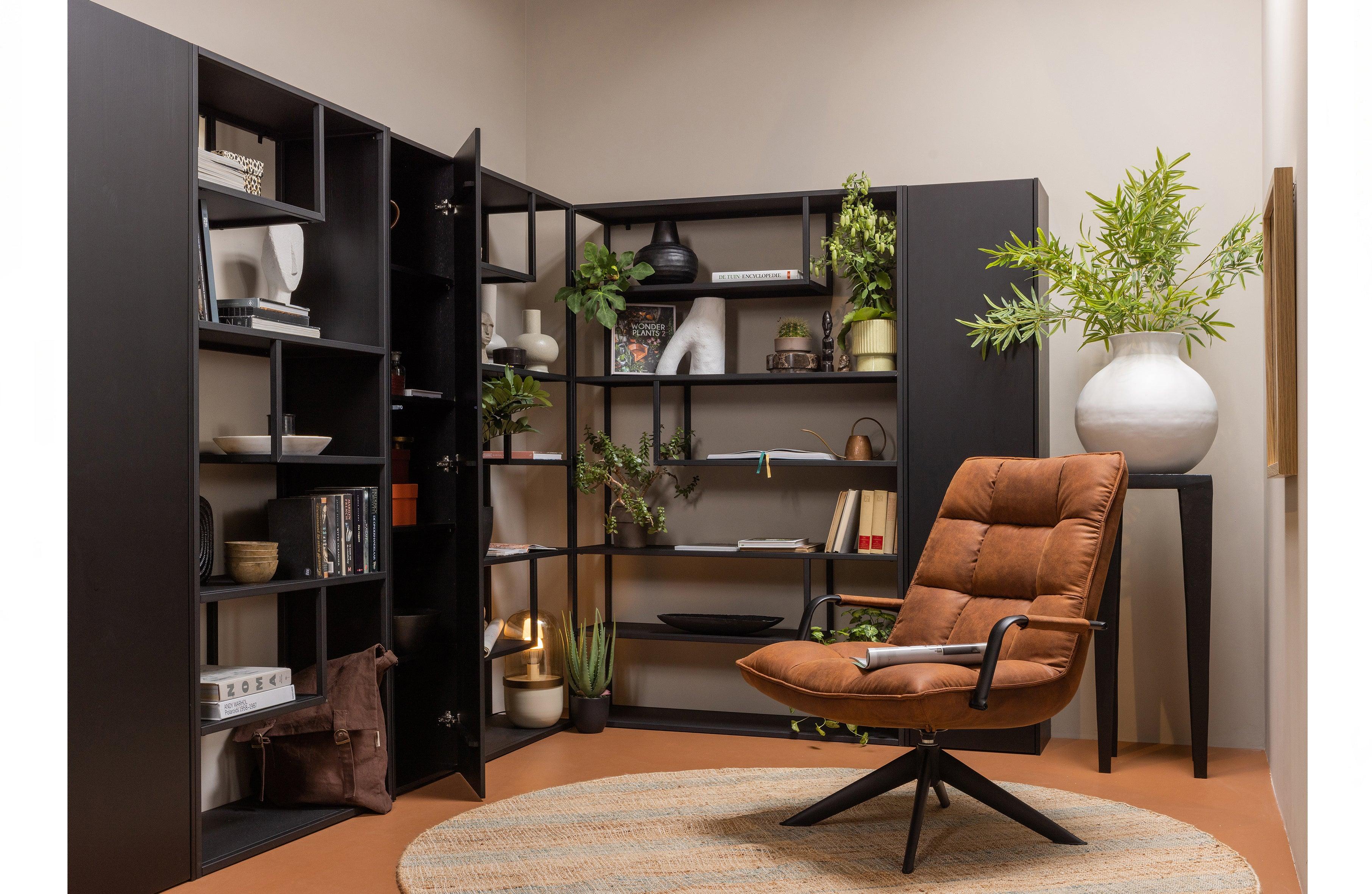 Schwarzer Bücherregal Teun ist wie eine reine Karte, die bereit ist, Ihre Möbelinspirationen zu retten, wie ein makelloses Bild, das die Schönheit Ihrer Lieblingsartikel betont. Seine schwarze Farbe ist wie eine tiefe Nacht und verleiht einem mysteriösen und raffinierten Möbel innenräumen.