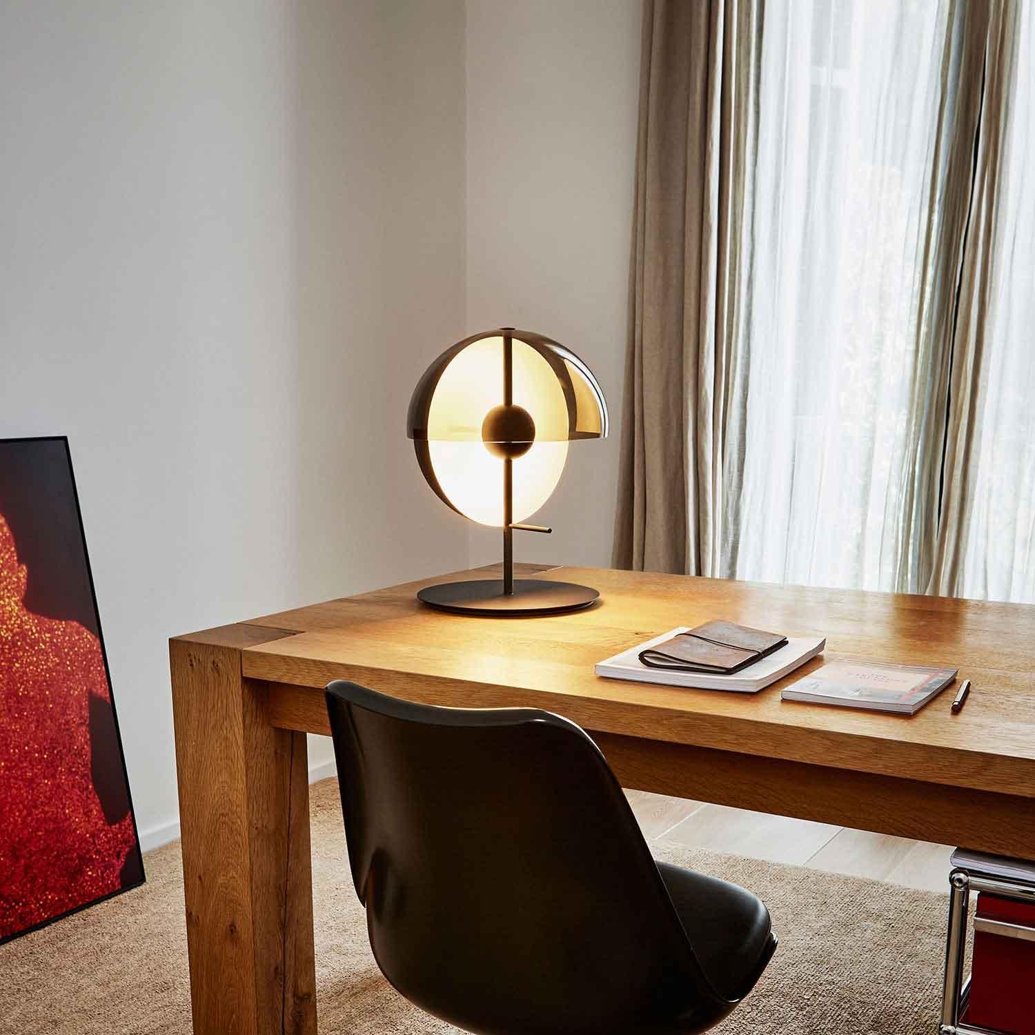 Theia hat zwei Gesichter: Um sie zu entdecken, drehen Sie einfach den Leuchten um die zentrale Achse. Es kann in Ihre Richtung gerichtet werden, um sie als Lampe zum Lesen oder in Richtung eines Objekts oder einer Wand zu verwenden, wodurch ein subtiles, indirektes Licht erzeugt wird. Da der Schatten der Metalllampen vollständig undurchsichtig ist, verändert diese Drehbewegung die Wahrnehmung dieses Elements vollständig. Das formale Design der Theia -Lampe ist elementar und optimiert: zwei Hemisphären, eine horizontal und die andere vertikal platziert, die sich miteinander überschneiden.