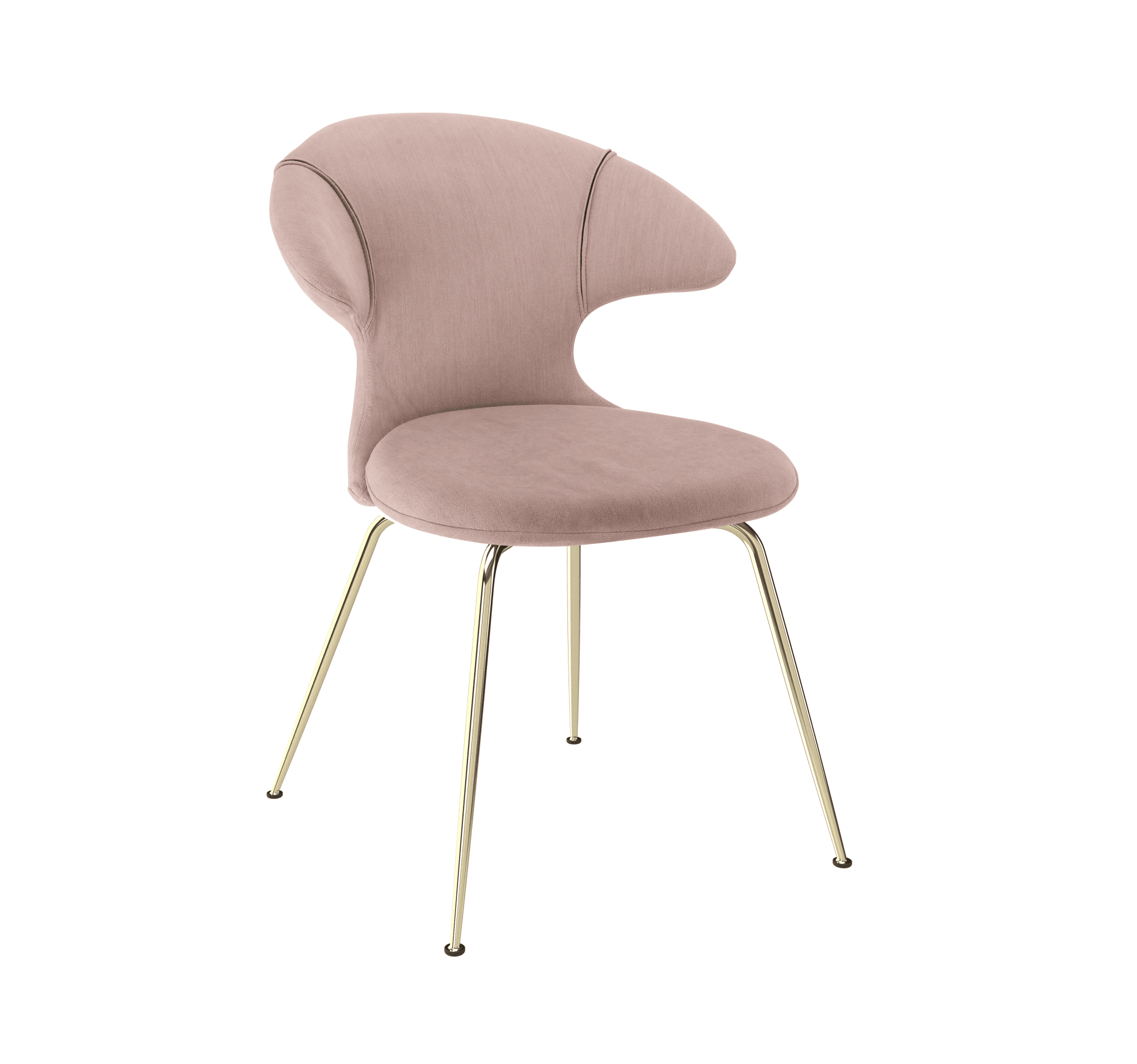 Time Flyies Pulver Rose Stuhl mit einer goldenen Basis