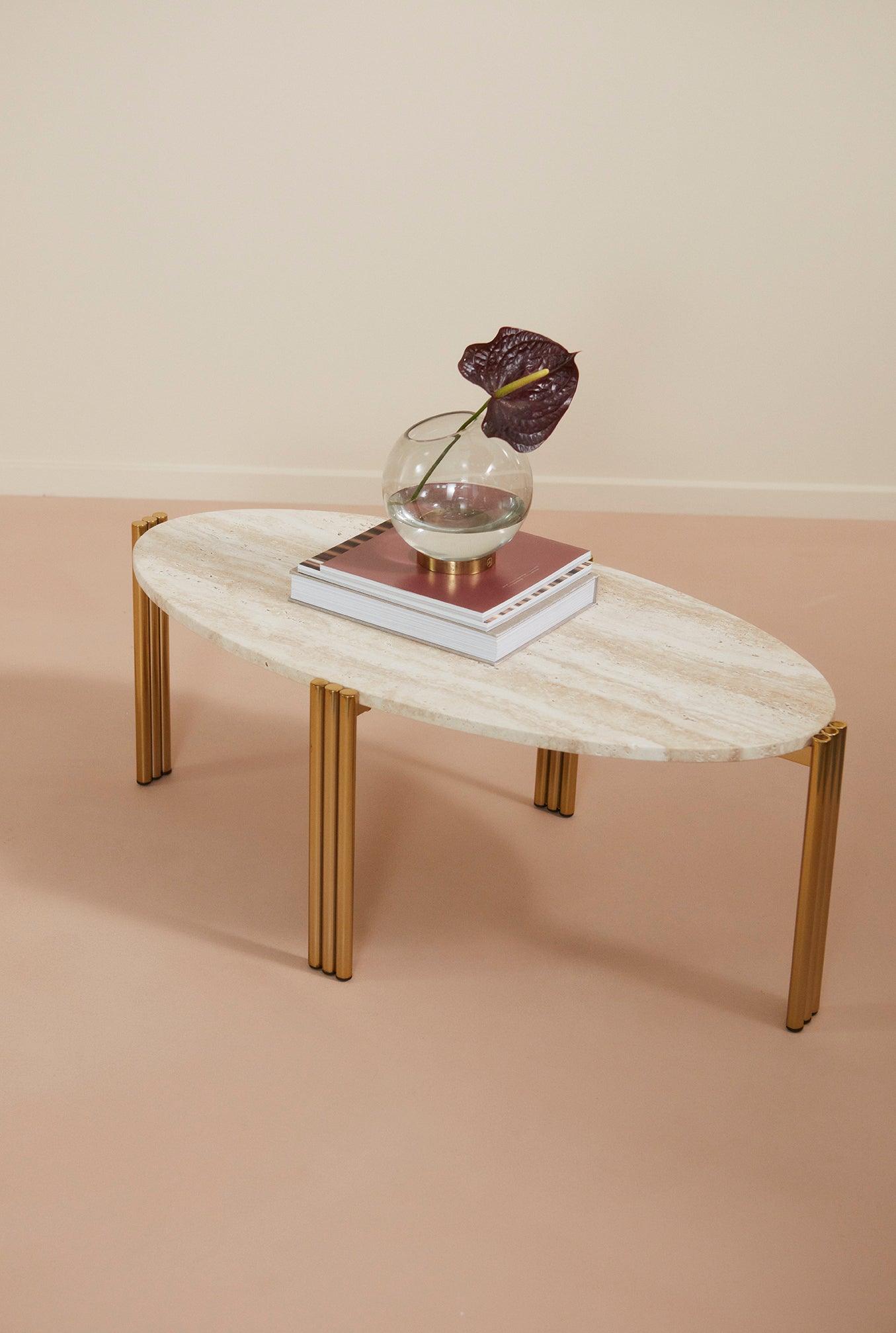 Tribus Couchtisch ein helles Oberteil mit einer goldenen Basis