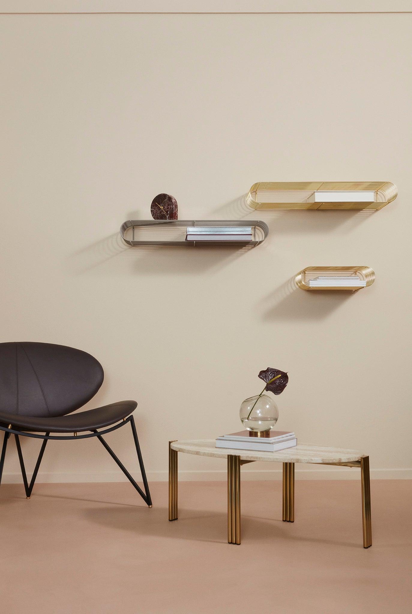 Stolik kawowy TRIBUS jasny blat ze złotą podstawą AYTM    Eye on Design