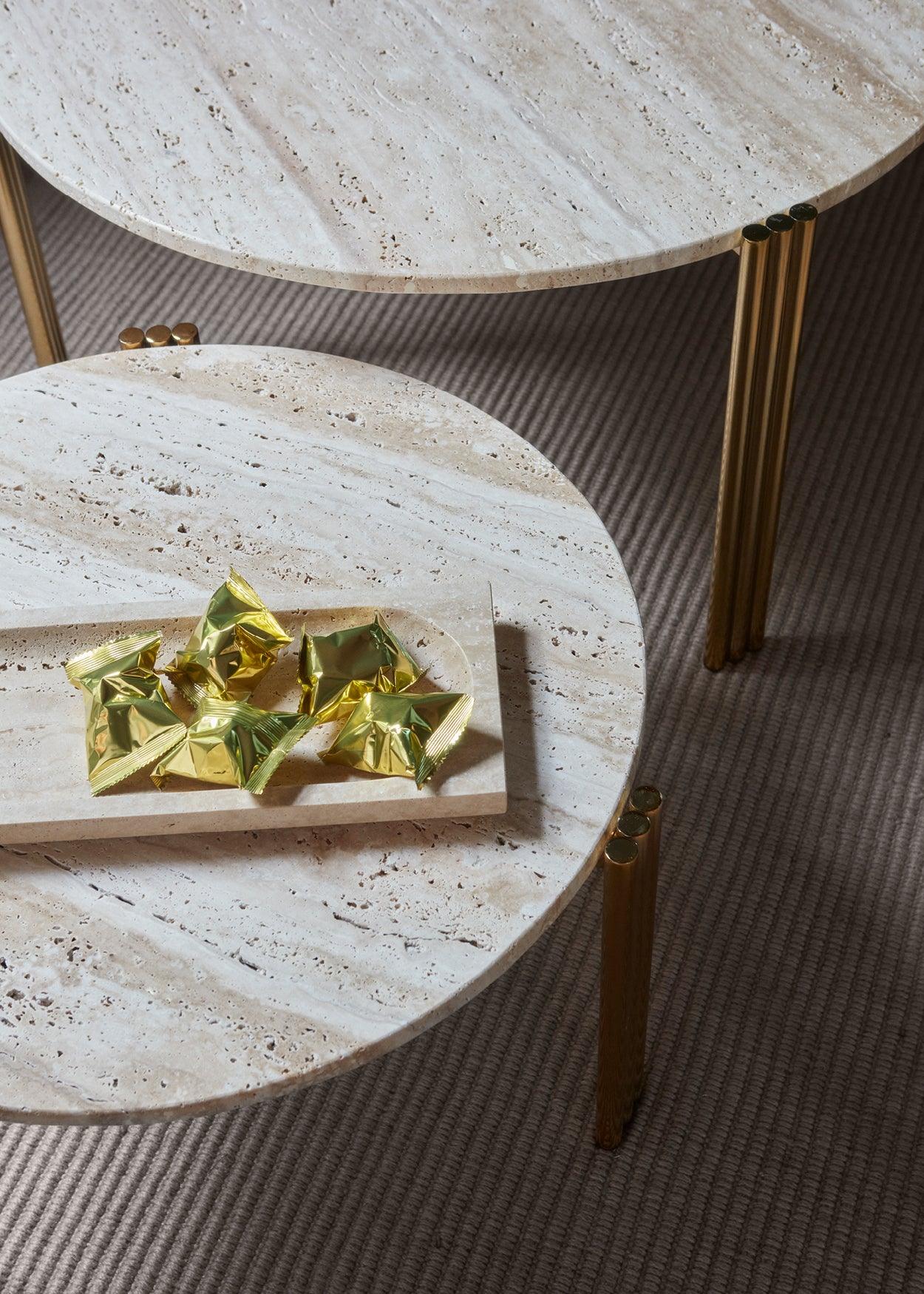 Stolik kawowy TRIBUS jasny blat ze złotą podstawą AYTM    Eye on Design