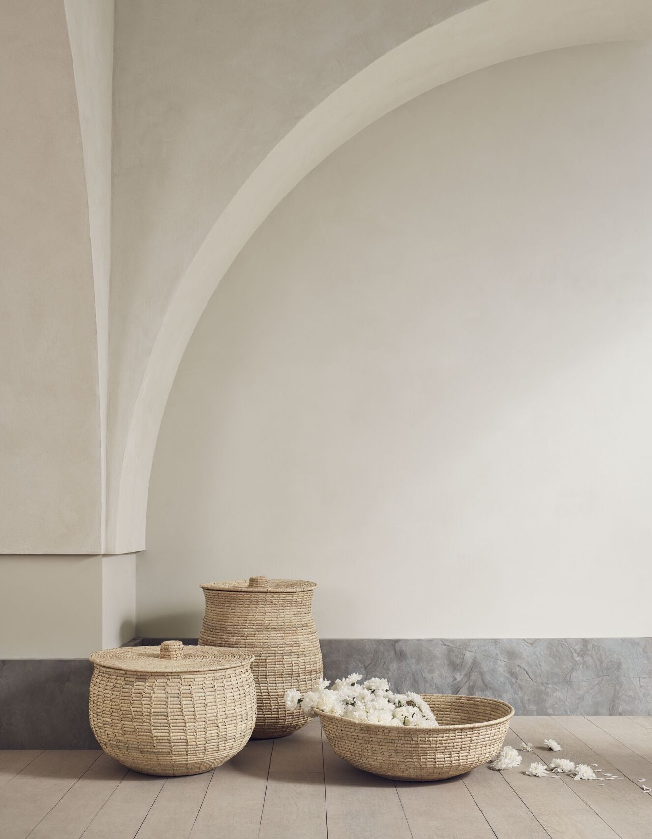 Korb Tulip ist das Ergebnis einer Zusammenarbeit mit dem Designstudio Niruk. Es besteht aus natürlichen Materialien und zeichnet sich durch eine empfindliche Form und einen organischen Ausdruck aus. Sein einzigartiges Design ist von der Natur und dem traditionellen Handwerk inspiriert, das er auf zeitgenössische Innenräume überträgt.