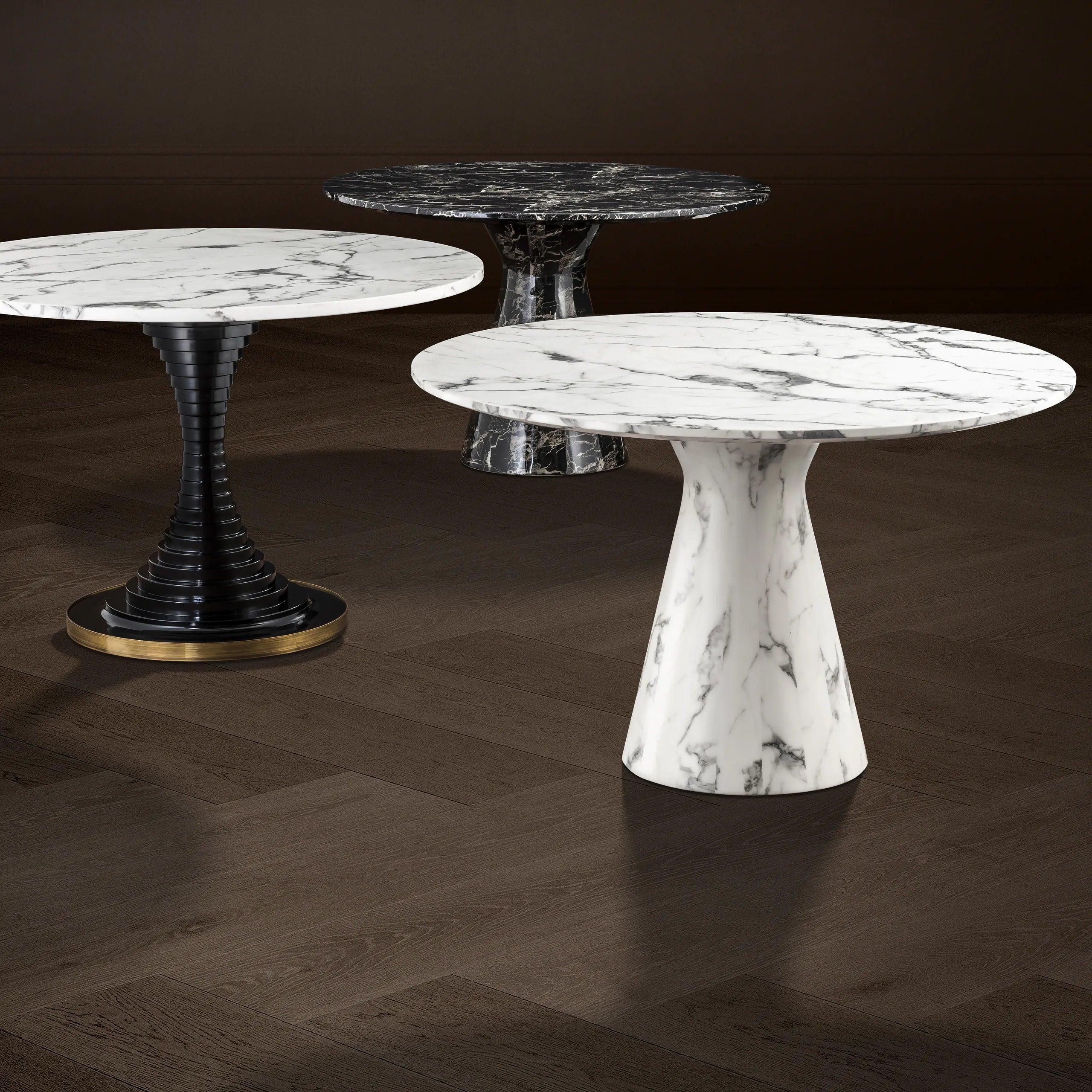 Esstisch Turner ist ein echtes Werk der Kunst des zeitgenössischen Designs. Aus marmorähnlichem Material fällt es mit seinem einzigartigen Aussehen und seiner Textur das Auge. Die charakteristischen schwarzen Wirbel und Venen, die sich durch ihre Oberfläche schleichen, machen jede Kopie einzigartig.