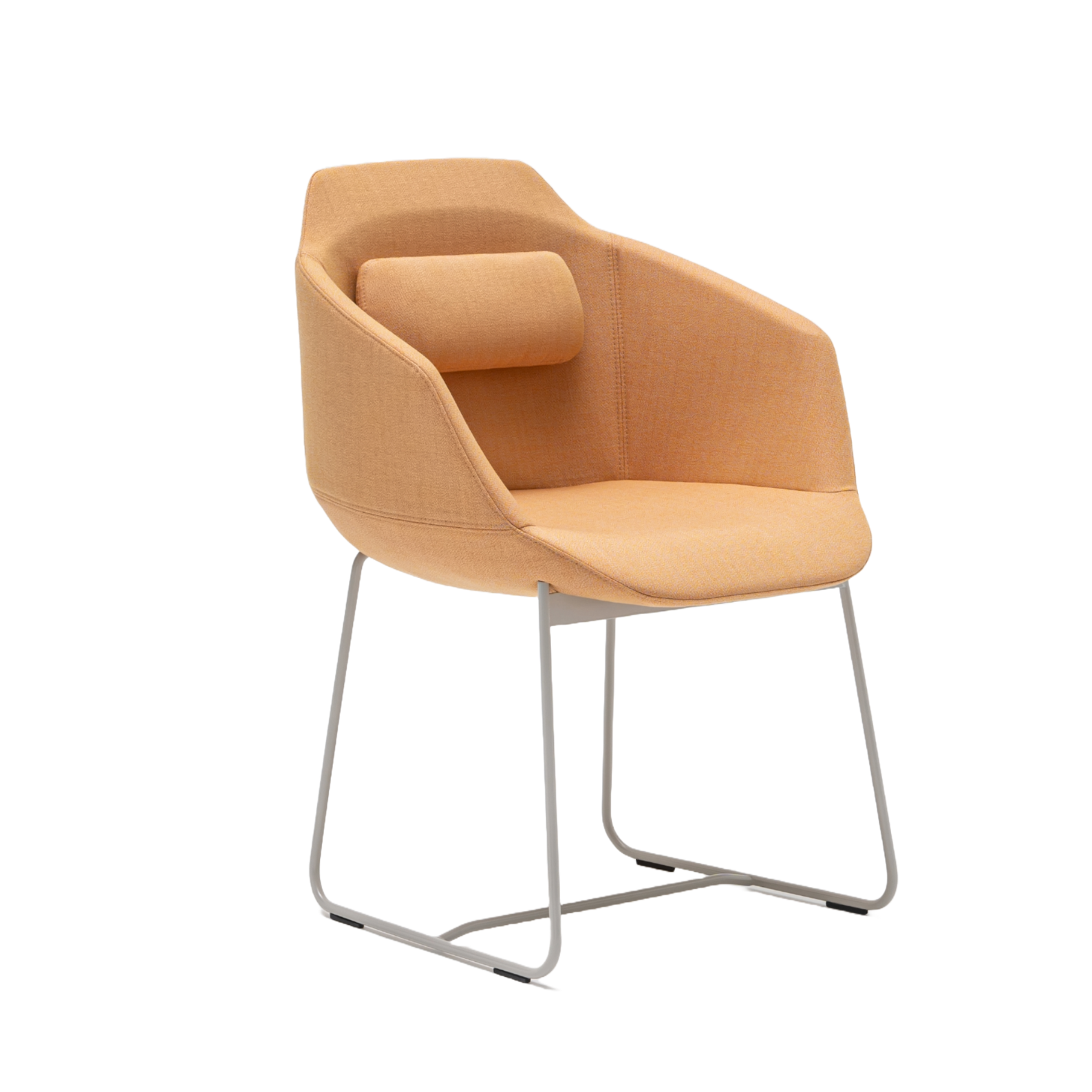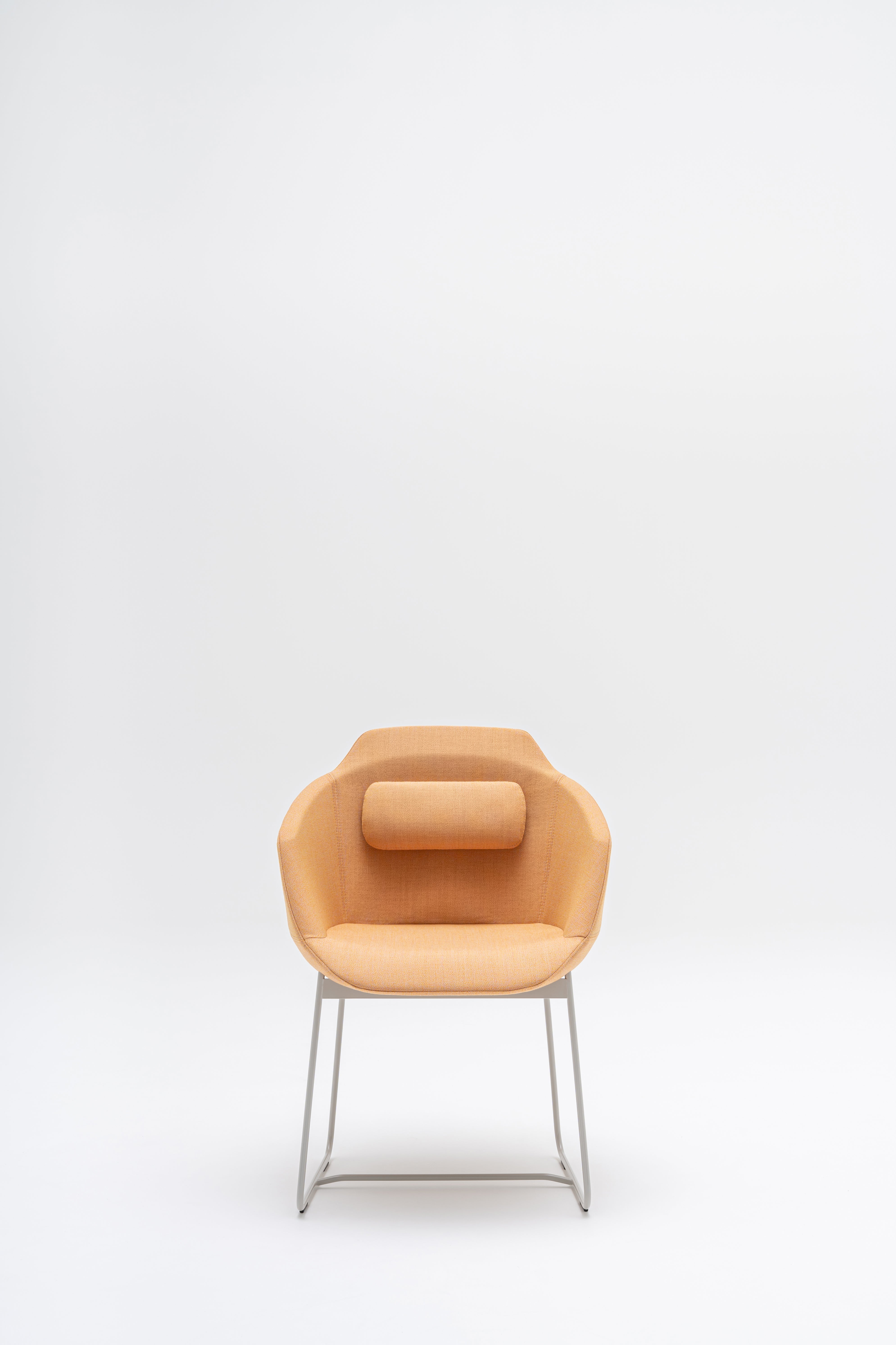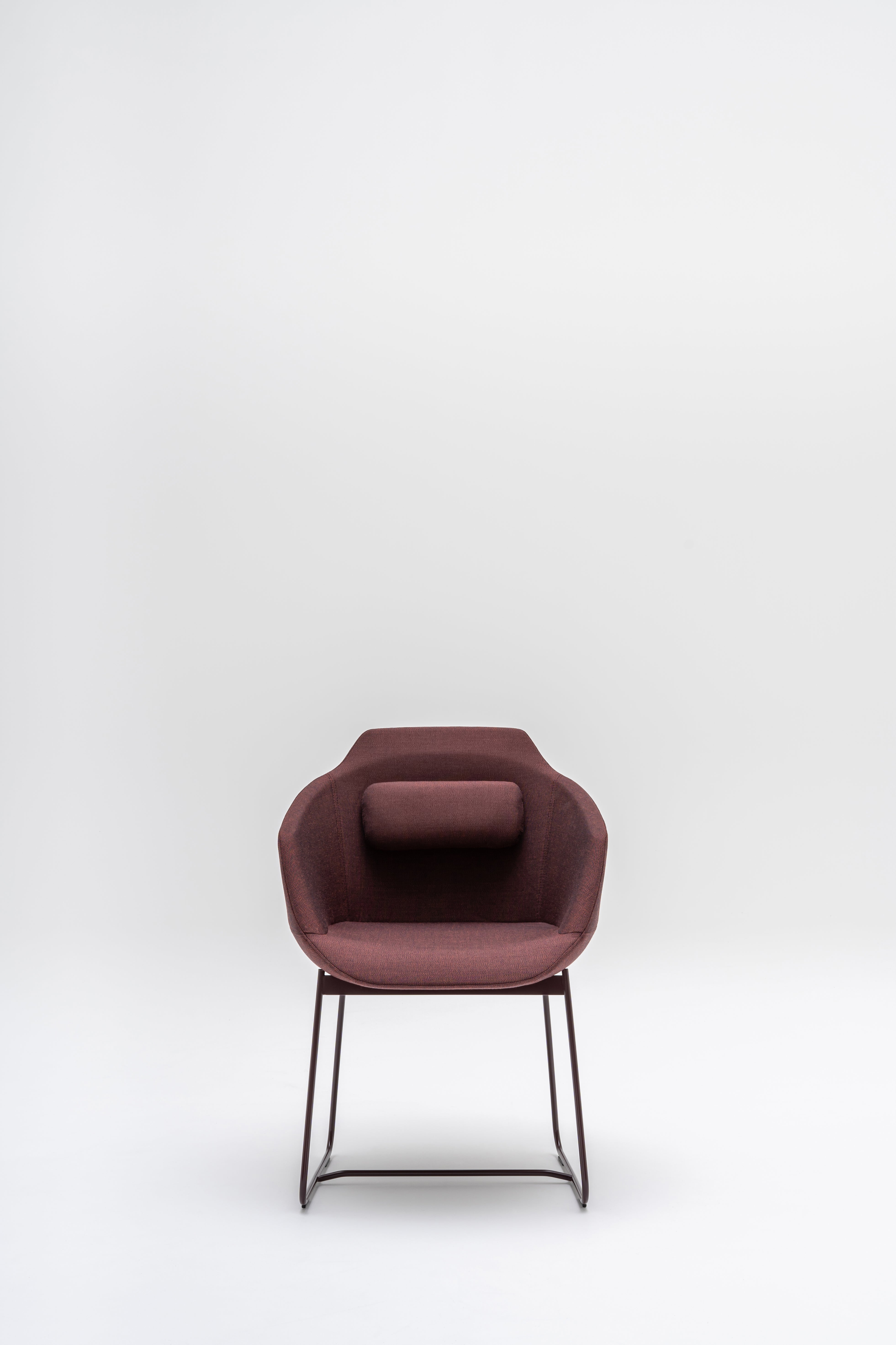 Stuhl Ultra mit einer Basis in Form von Skids ist eine perfekte Kombination aus hoch entwickeltem Design und Ergonomie, die für den Nutzerkomfort erstellt wurde. Das charakteristische gepolsterte Kissen auf der Rückenlehne erhöht nicht nur den Komfort, sondern macht auch mit einem einzigartigen Design Aufmerksamkeit auf sich. Dank der ungewöhnlichen Basis ist Ultra ideal für Büro-Urlaubszonen und Besprechungsräume. Die schlanke Basis steht im Gegensatz zu einem breiten Sitz und schafft eine harmonische und moderne Figur.