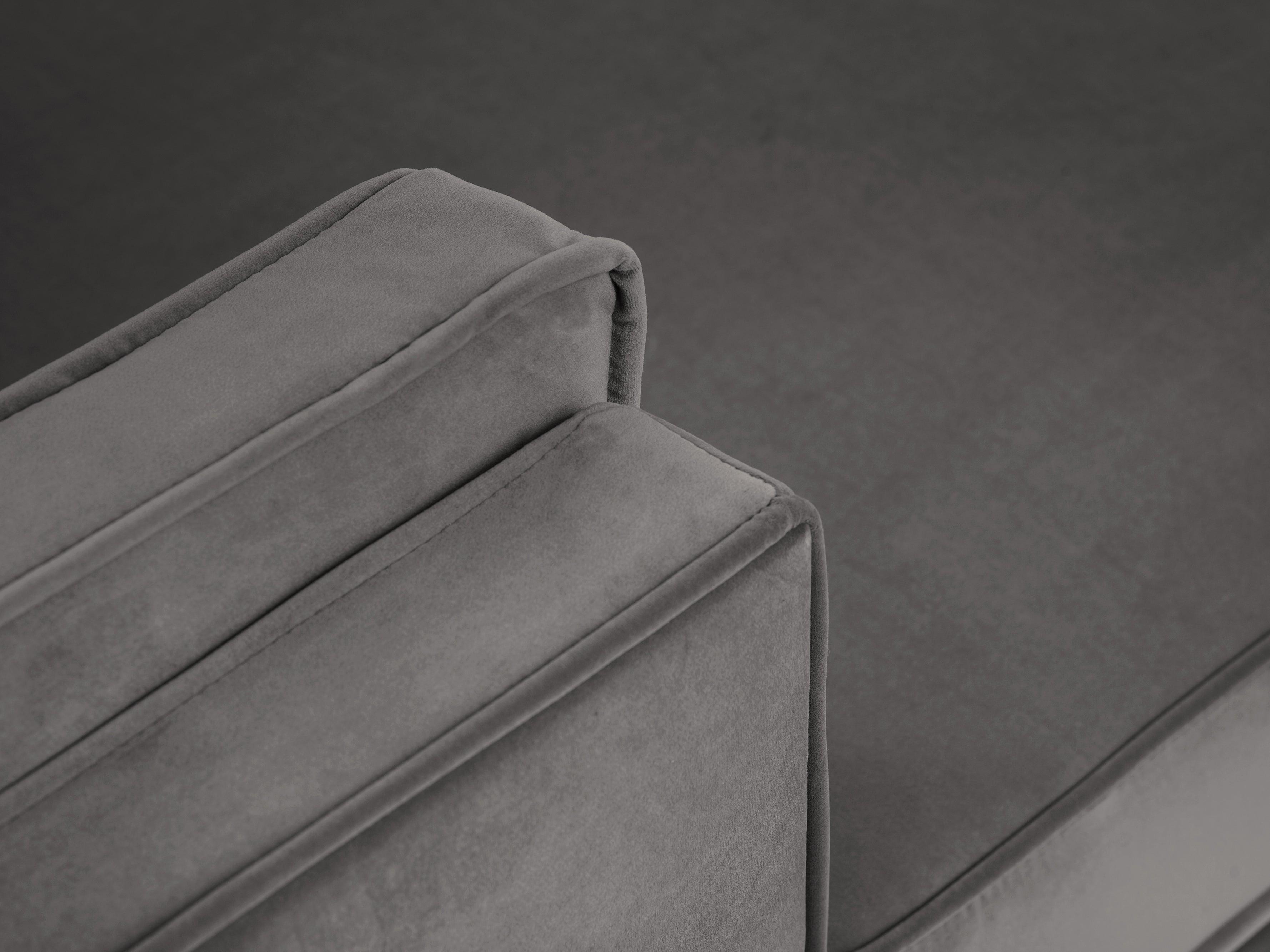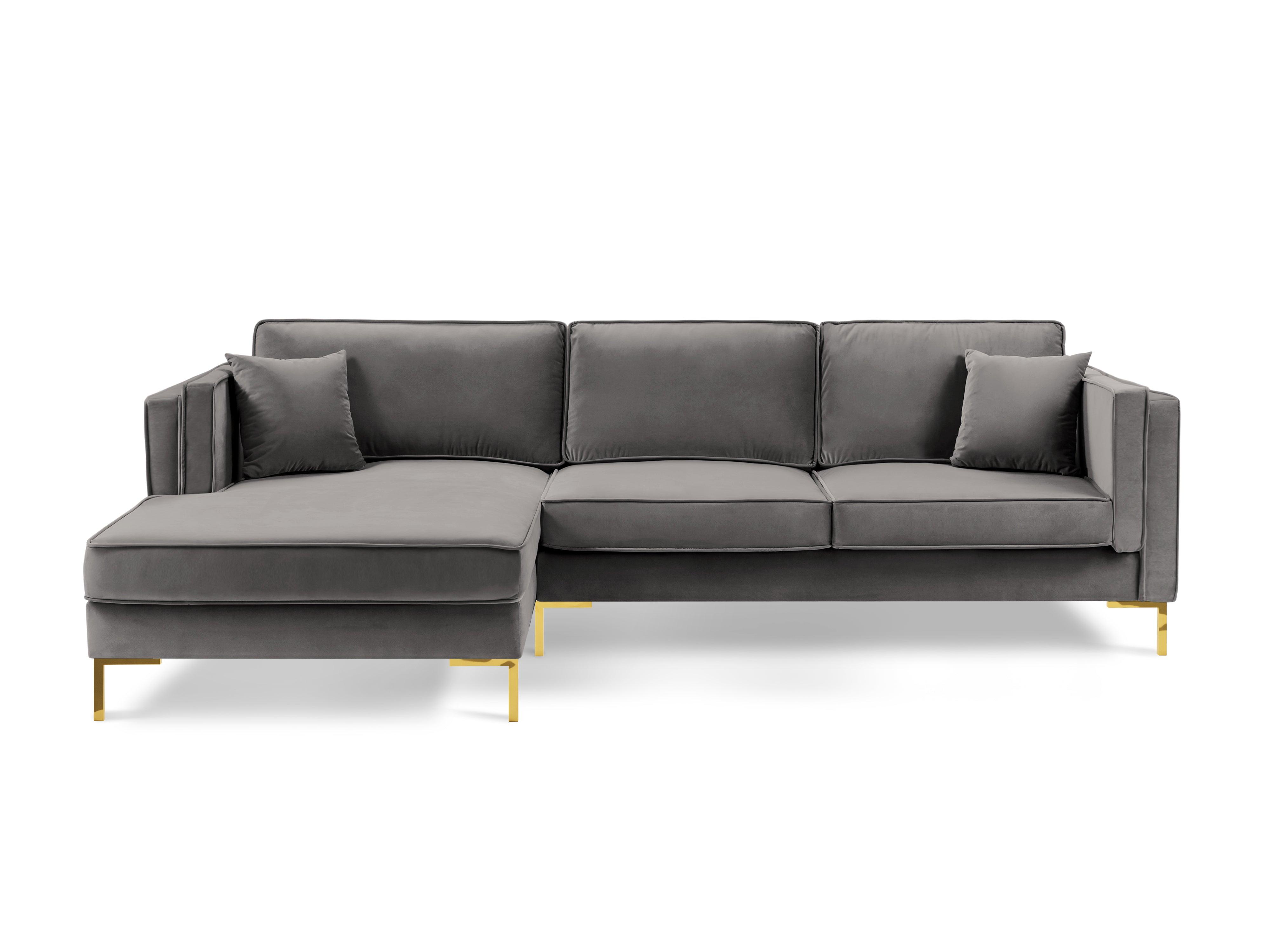 Luis ist ein linker Ecksofa, das die perfekte Ergänzung für ein elegantes Wohnzimmer oder Büro darstellt. Die zeitlose Form vereint minimalistisches Design und Funktionalität. Die solide Konstruktion basiert auf metallischen Beinen, die der gesamten Form Leichtigkeit verleihen. Der Bezug aus samtigem Material ist angenehm im Griff und besonders abriebfest.