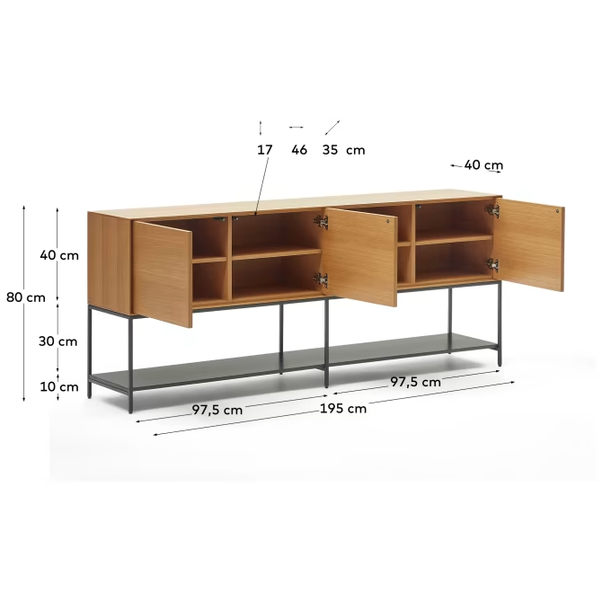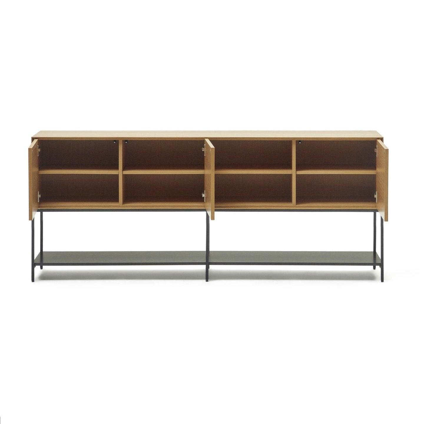 Kommode Vedrana, entworfen von dem erfahrenen Designteam von La Forma, repräsentiert die perfekte Harmonie zwischen Eichenfurnier und Stahl und schafft eine außergewöhnliche Verbindung von Funktionalität und Ästhetik. Diese einzigartige Materialkombination macht Vedrana zu einer idealen Ergänzung für verschiedene Haustypen und Einrichtungsstile und unterstreicht deren Eleganz und Modernität.