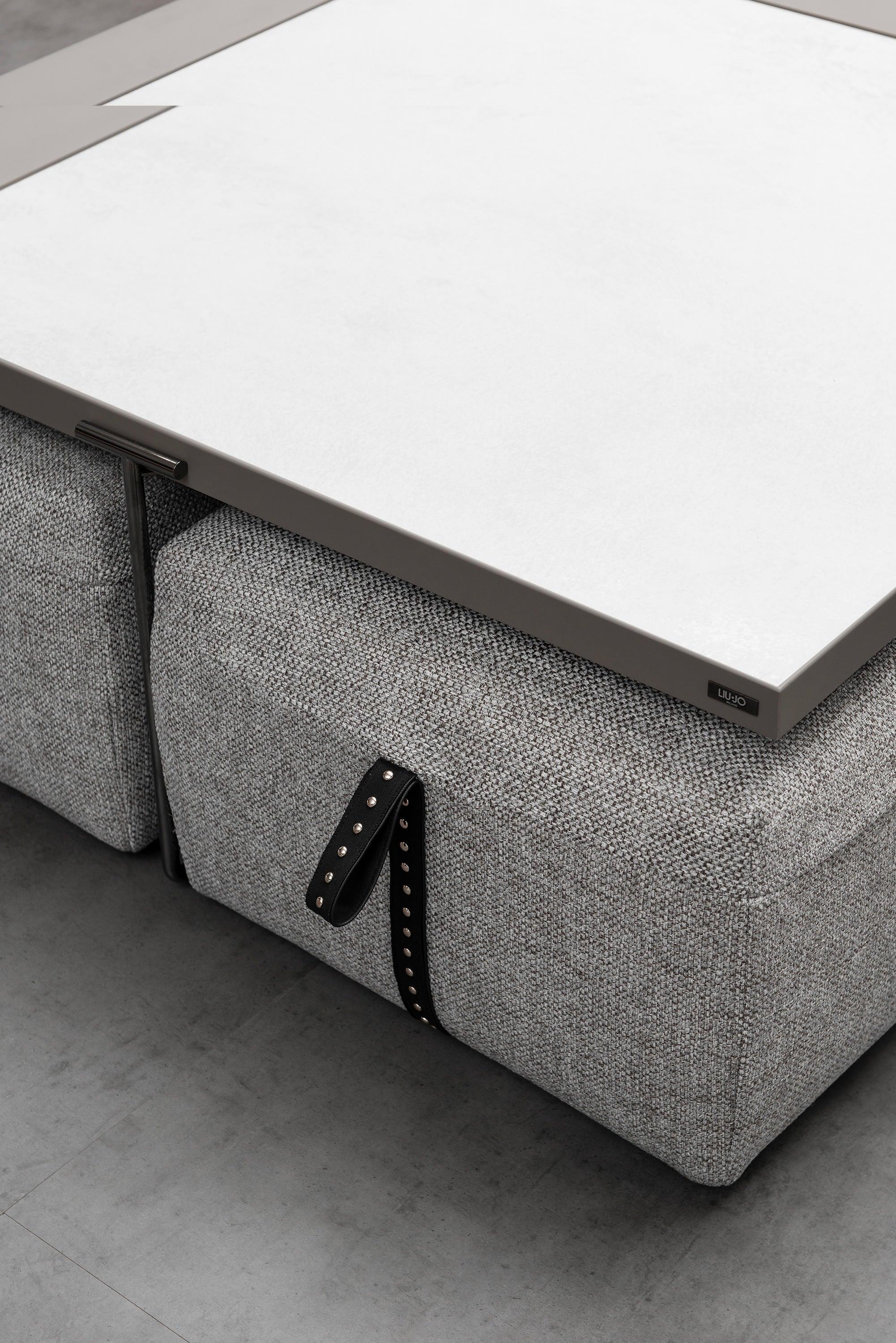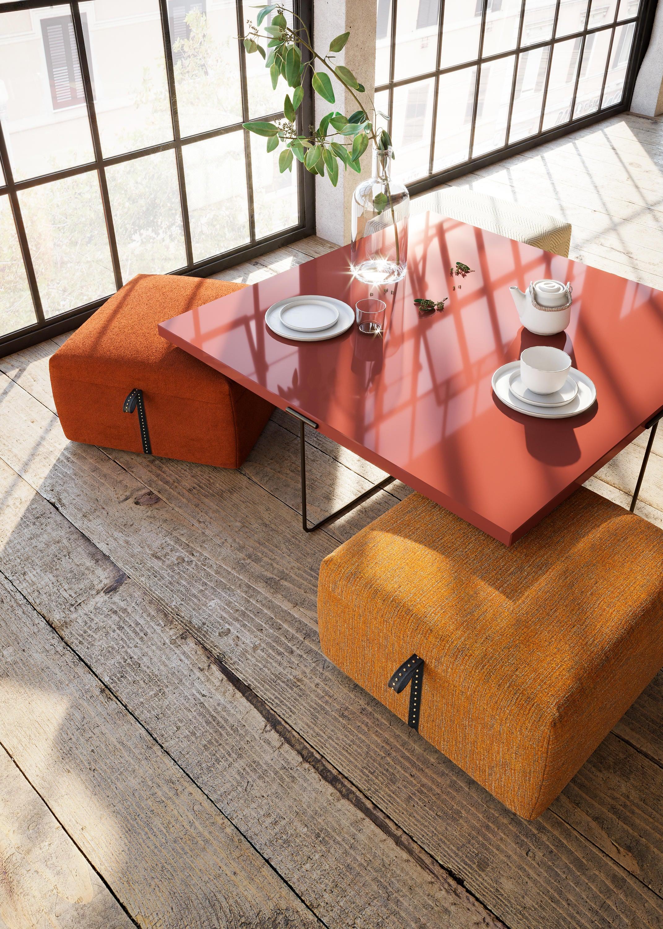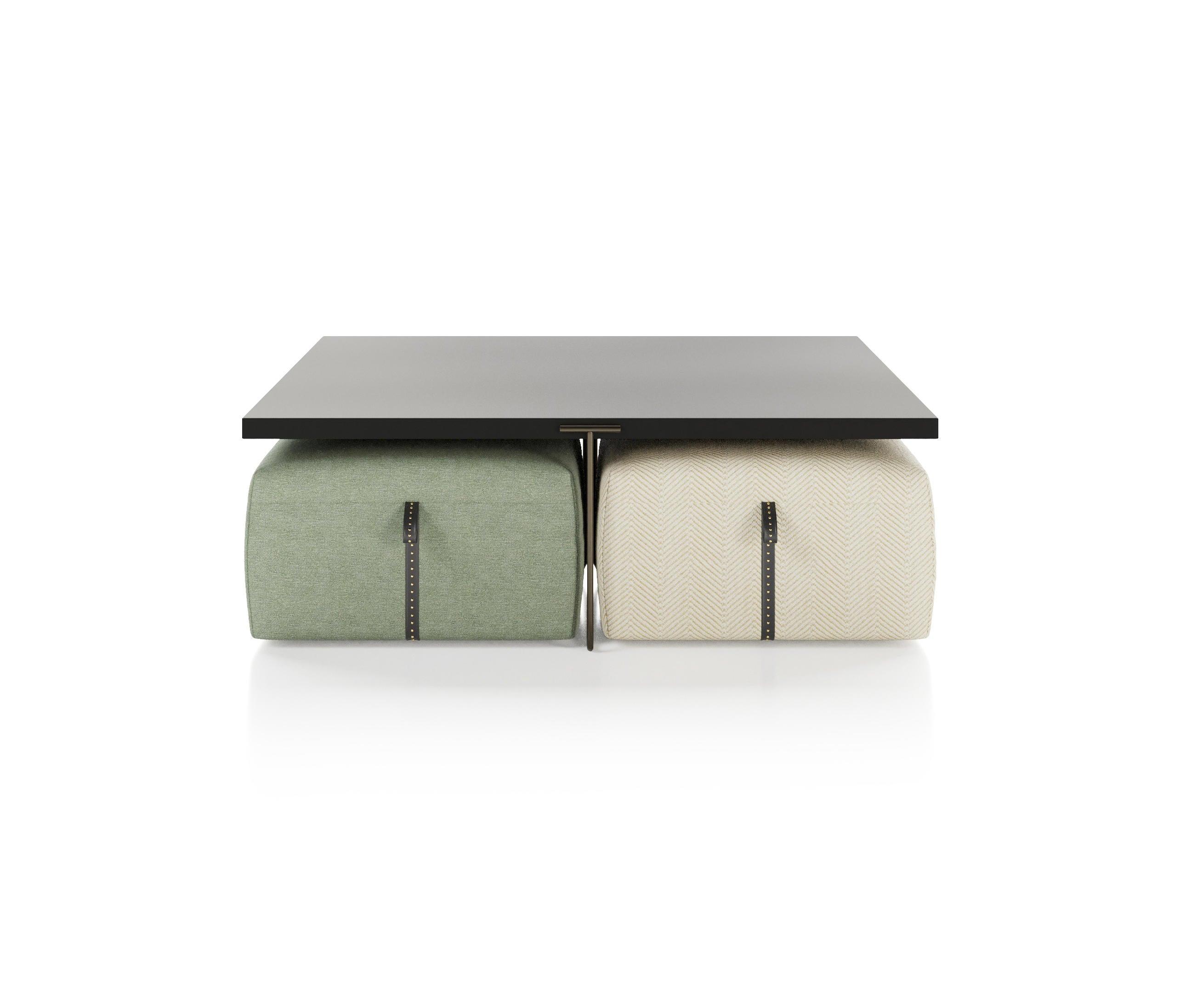 Die Stützen des lackierten Couchtischs werden durch versteckte Sitze versteckt, die durch einfache und intuitive Bewegung entstehen können. Diese innovative Hidden Island Capsule kann bis zu vier Gäste unterbringen und komfortable Sehenswürdigkeiten bieten, um in einer multifunktionalen Perspektive zu sitzen. Dank dieser Tabelle können Sie jeden Platz maximal nutzen und ihn an die sich ändernden Bedürfnisse und die Geometrie des Raums anpassen.