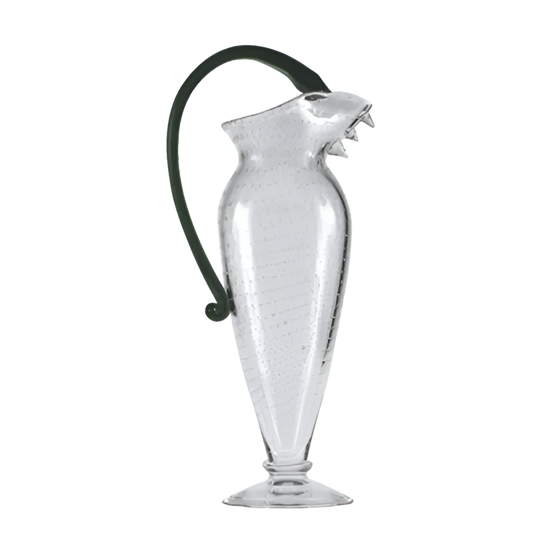 Vichy besteht aus transparentem und grünem geblasenem Glas und kombiniert die Leichtigkeit des Materials mit einer ausdrucksstarken Form. Dieses Gefäß dient nicht nur zum Servieren von Wasser, sondern ist vor allem ein einzigartiges Dekorationselement, das jedem Tisch oder Interieur einen künstlerischen Charakter verleiht.