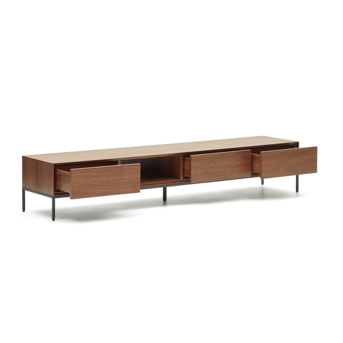 RTV-Schränke Vedrana, entworfen von dem erfahrenen Designteam von La Forma, repräsentiert die perfekte Harmonie zwischen Nussbaumfurnier und Stahl und schafft eine außergewöhnliche Verbindung von Funktionalität und Ästhetik. Diese einzigartige Materialkombination macht Vedrana zu einer idealen Ergänzung für verschiedene Haustypen und Einrichtungsstile und betont deren Eleganz und Modernität.
