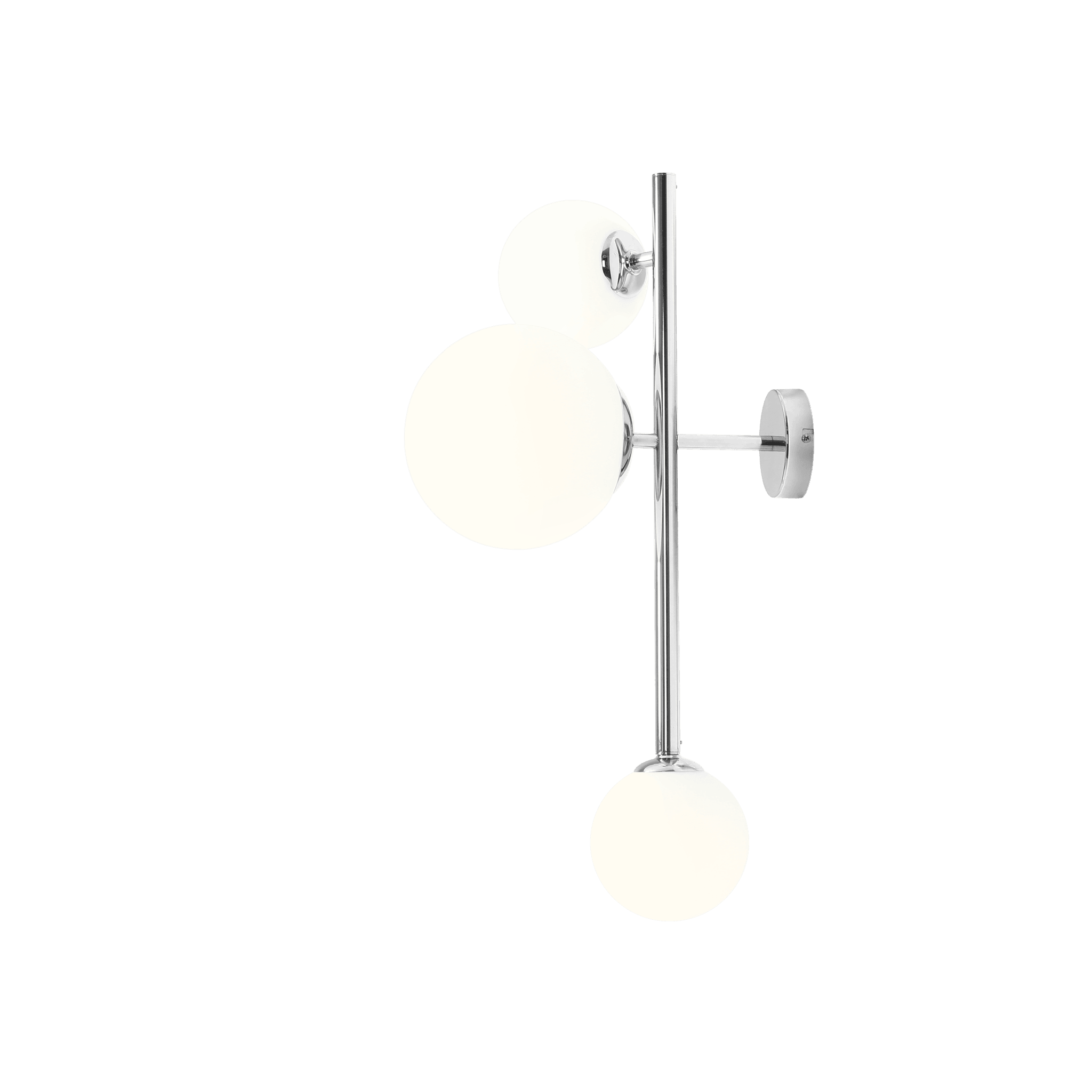 Designer -Wandlampe Dione ist die Moderne kombiniert mit einem klassischen Design. Weiße Milchkugeln ergänzen die Struktur des Leuchtens fantastisch, während das elegante Design auf der Grundlage von Metall mit seinem ungewöhnlichen und äußerst effektiven Aussehen beeindruckt.