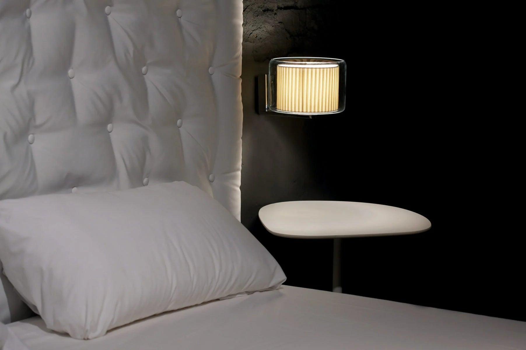 Der interne Diffusor-Stoff ist in zwei Oberflächen erhältlich: ein Band aus plissierter weißer Baumwolle und einer moderneren und minimalistischeren Version von Perlhit-Weiß-Textilen.