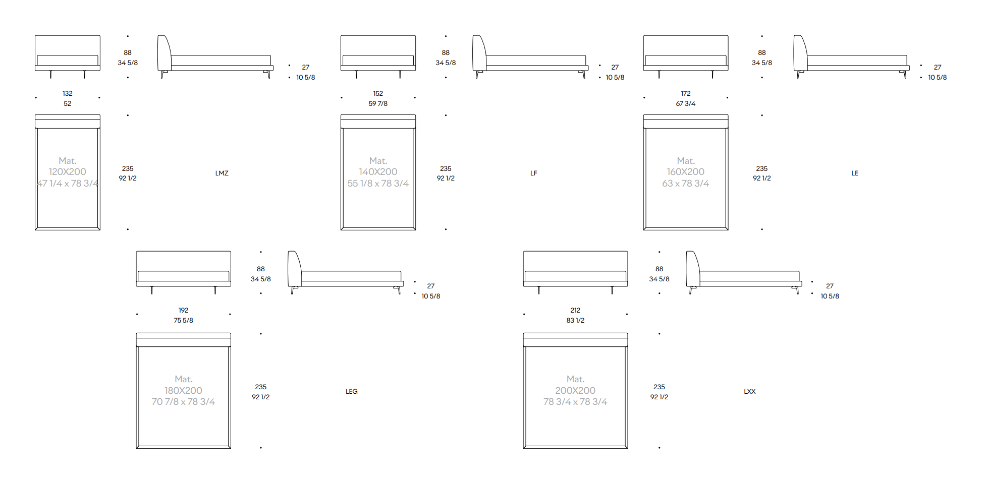 Schlafbereich: 120x200 / 140x200 / 160x200 / 180x200 / 200x200 cm