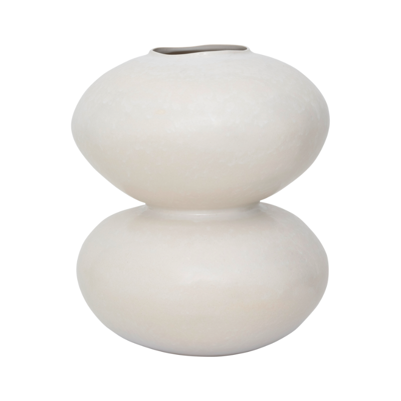 Keramische Vase Foss begeistert mit einer zarten, subtil glänzenden reaktiven Glasur und einer weichen, organischen Linie, die ihr einen außergewöhnlich ruhigen und eleganten Charakter verleihen. Ihr Farbton von gebrochenem Weiß harmoniert perfekt mit neutralen Blumenarrangements und schafft einen minimalistischen Akzent in jedem Raum. Dank der skulpturalen Form kann diese dekorative Vase auch als eigenständige Dekoration fungieren und zieht mit subtiler Raffinesse die Blicke auf sich.