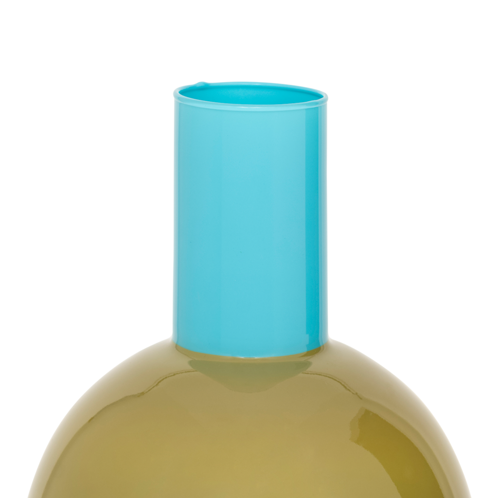 Hergestellt in Polen aus recyceltem Glas, verbindet die Glasvase modernes Design mit einem verantwortungsvollen Umgang mit Materialien. Ihre harmonische Form und ausdrucksstarken Farben verleihen dem Raum Energie und künstlerischen Charakter.