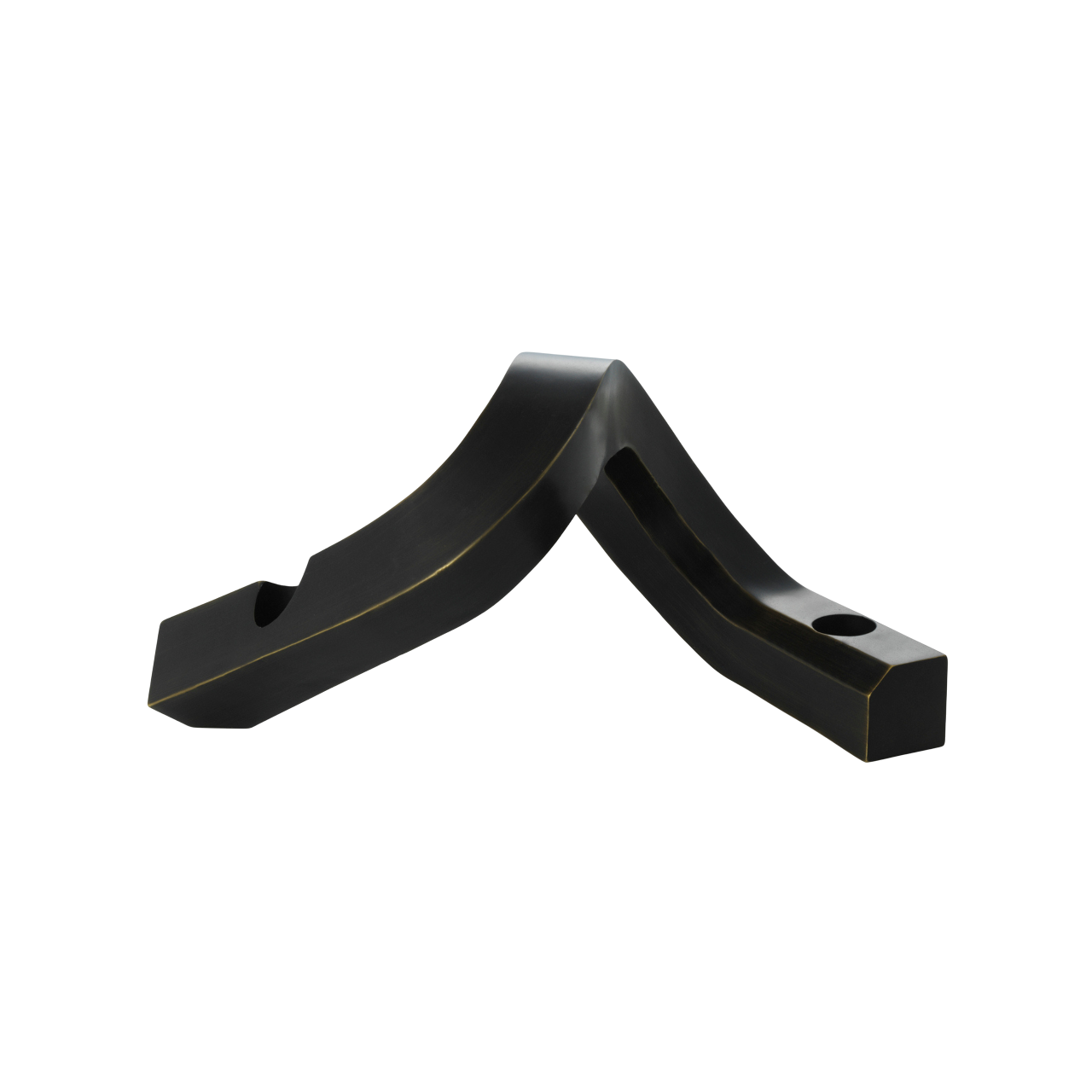 Die Version aus bronziertem Messing besticht durch ihr solides Gewicht und die edle Verarbeitung, die den skulpturalen Charakter des Kerzenhalters unterstreicht. Mit seinem wechselnden Erscheinungsbild je nach Blickwinkel überrascht Crooked immer wieder – er ist ebenso beeindruckend als Kerzenhalter wie als eigenständiges Dekorationselement in einem modernen Interieur.