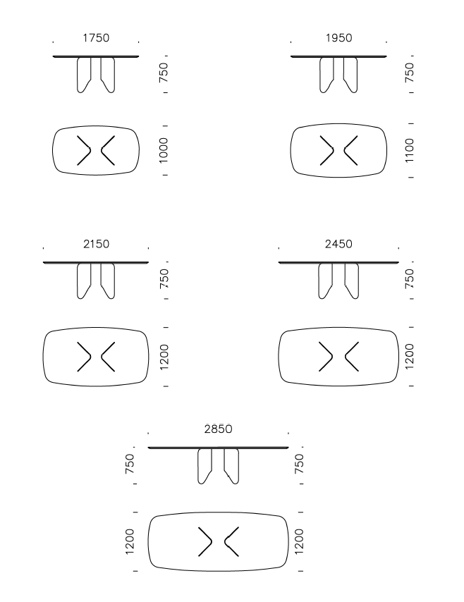 285 x 120 cm / h: 75 cm