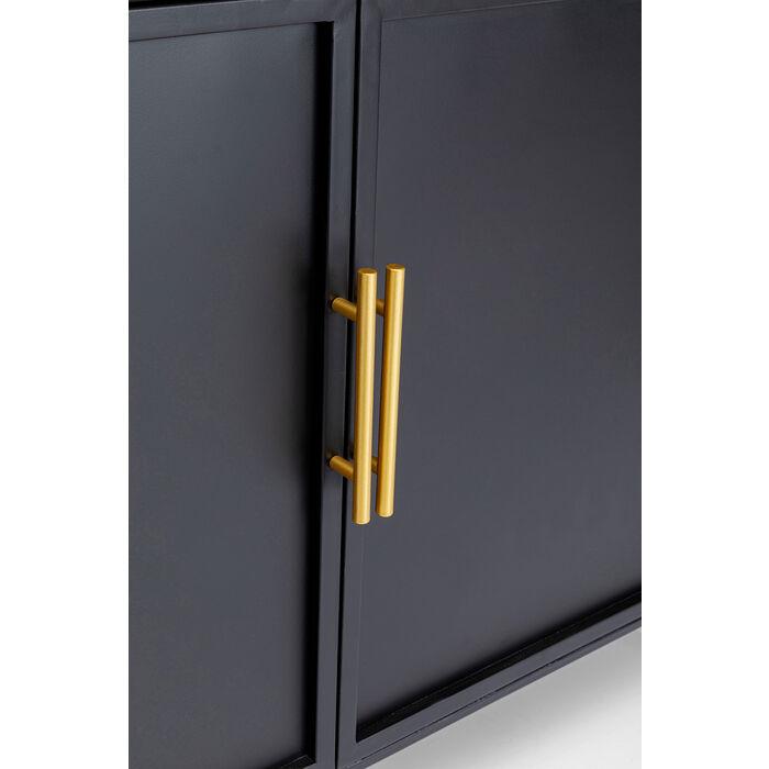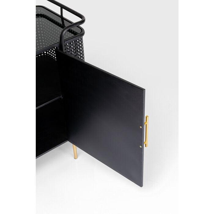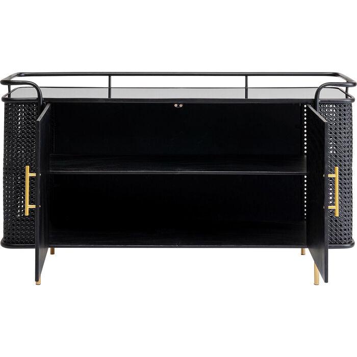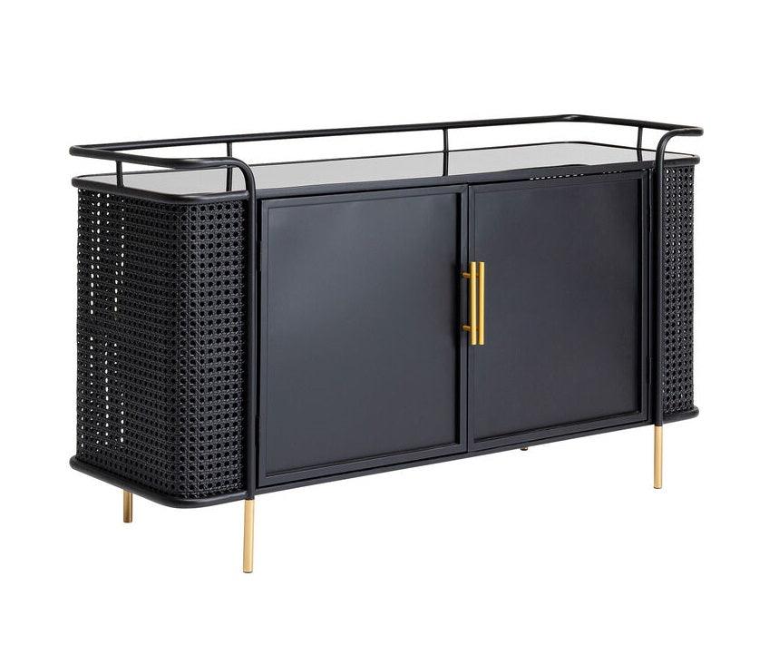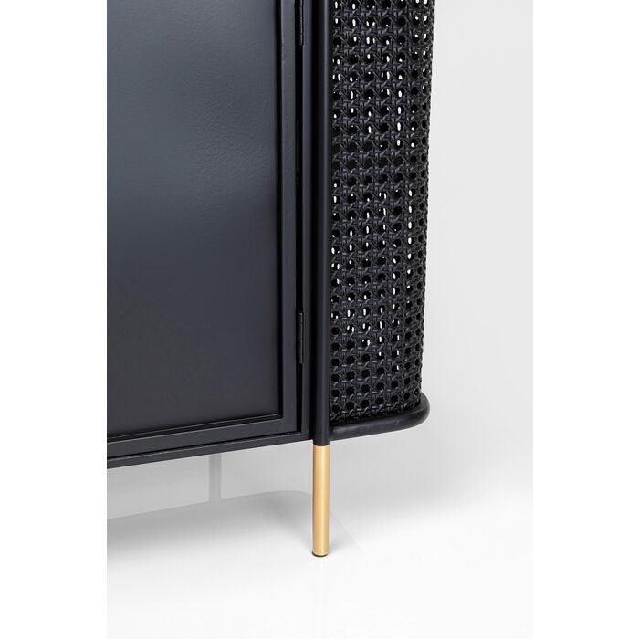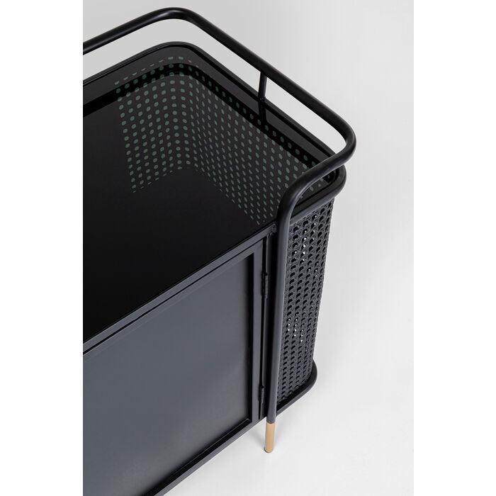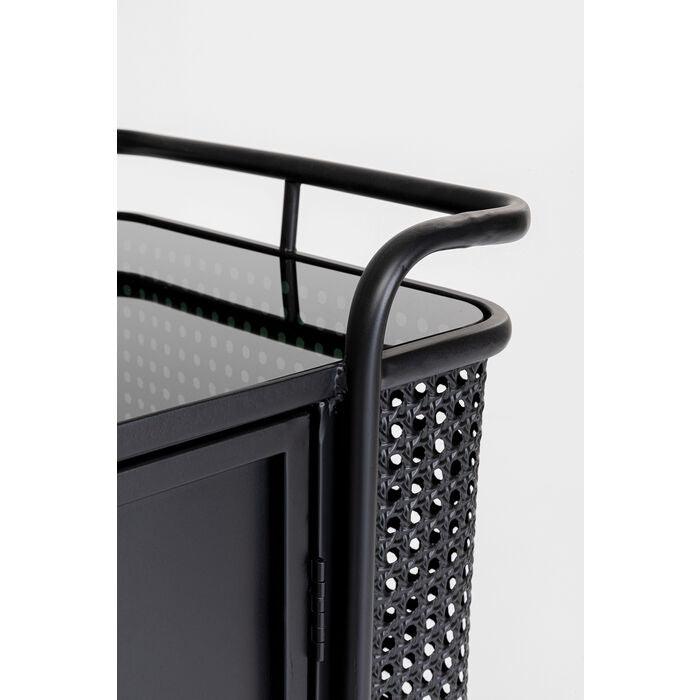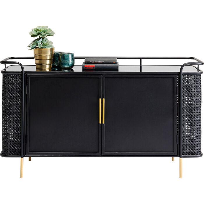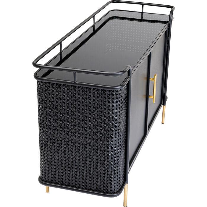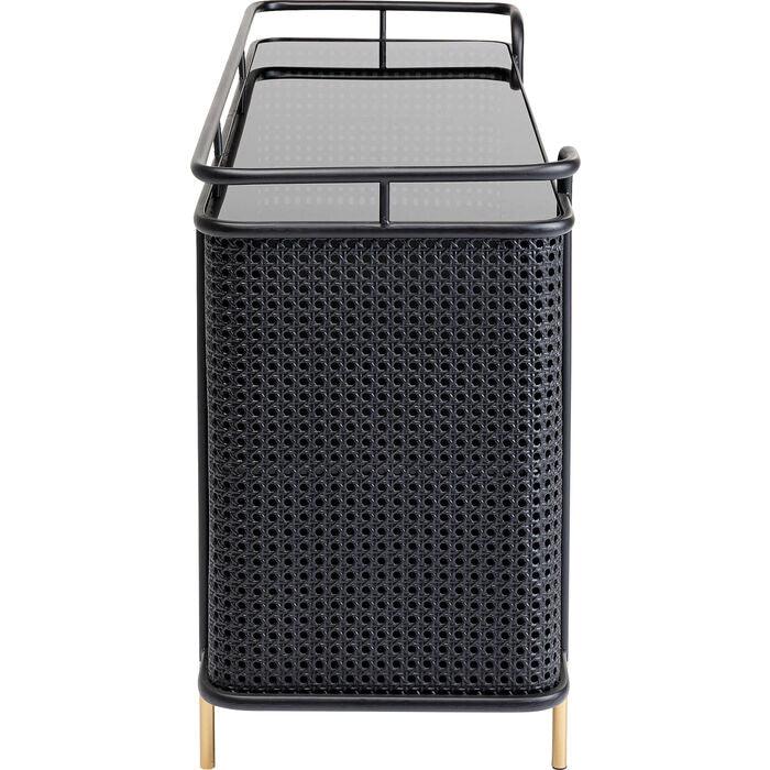 Kommode Zaun erweitert die stilistischen Welten von Stahlmöbeln. Dies ist kein traditionell hartes industrielles Aussehen, aber die moderne Eleganz lässt diese Möbellinie von den anderen abheben. Das Überraschungselement wird durch drei neue Zutaten für Workshop -Möbel bereitgestellt. Ein Wiener Netz erscheint an den Fronten. Glatte Oberflächen aus lackiertem Stahl und Glas sind mit Abschnitten mit Weidenaussehen verflochten, die ebenfalls aus Stahl bestehen.