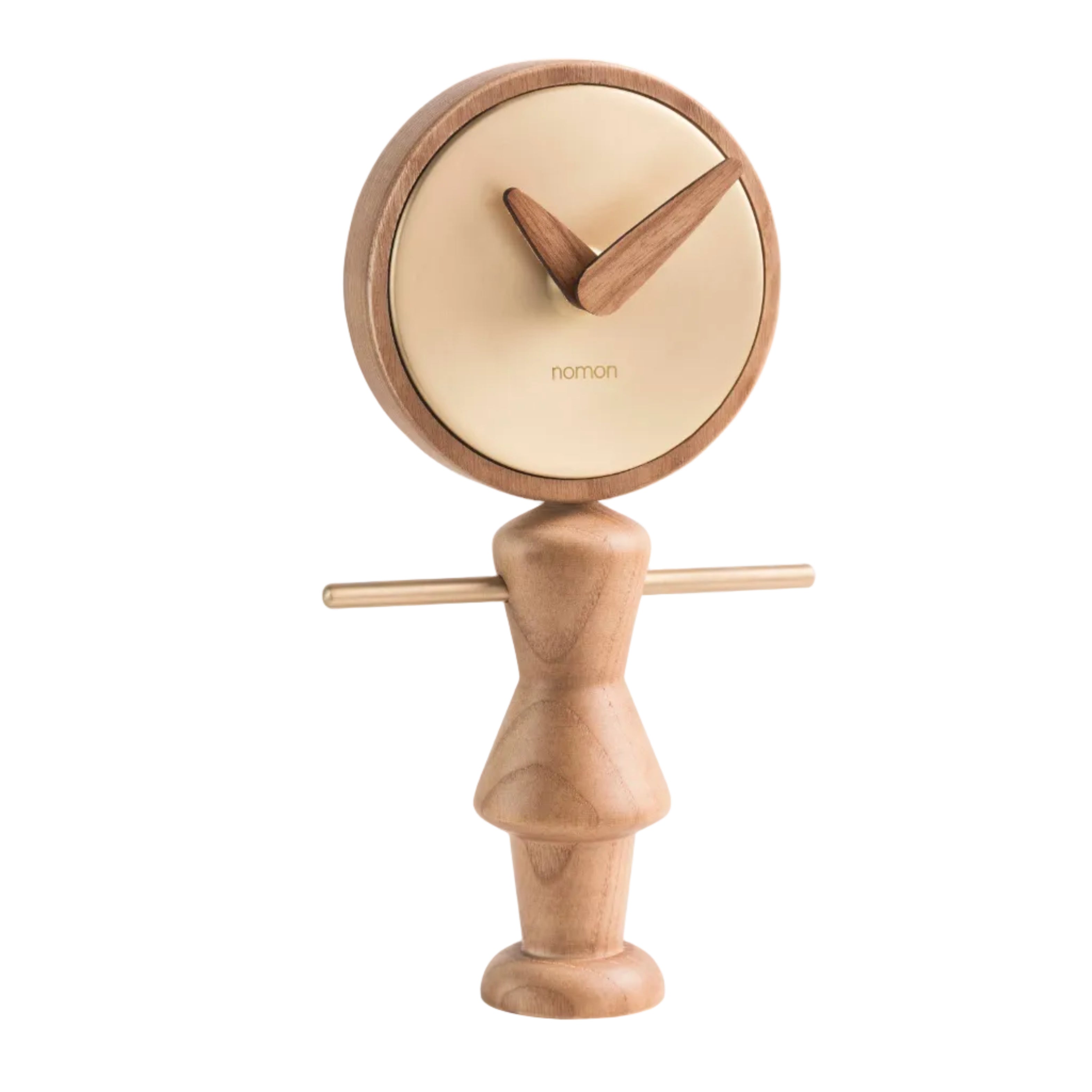 Tischuhr NENA aus Eichenholz mit messingfarbener Veredelung
