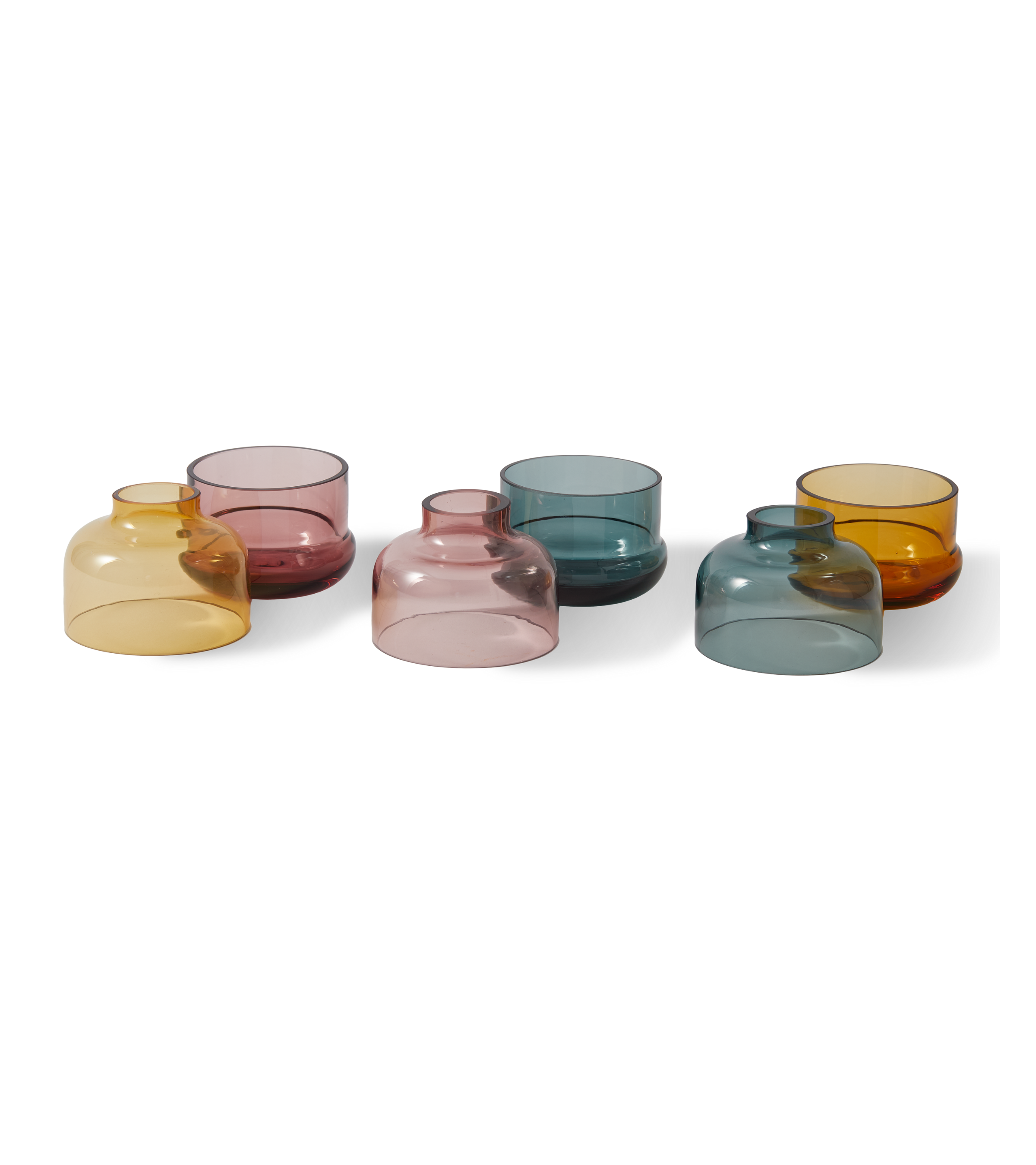 Wykonane z barwionego szkła sodowo-wapniowego, świeczniki zachwycają żywymi kolorami i kreatywnym podejściem do designu. Idealne do wprowadzania atmosfery zabawy i lekkości – będą centralnym punktem każdego stołu, komody czy parapetu.
